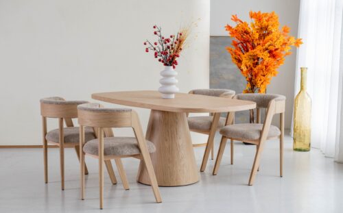 Liever een strak en modern statement? Dan is een rechte of ovale eettafel van eikenhout dé keuze. Stoer, minimalistisch en tijdloos. Dankzij het Japandi-Scandinavische ontwerp passen deze tafels in vrijwel elk interieur — van modern tot landelijk.