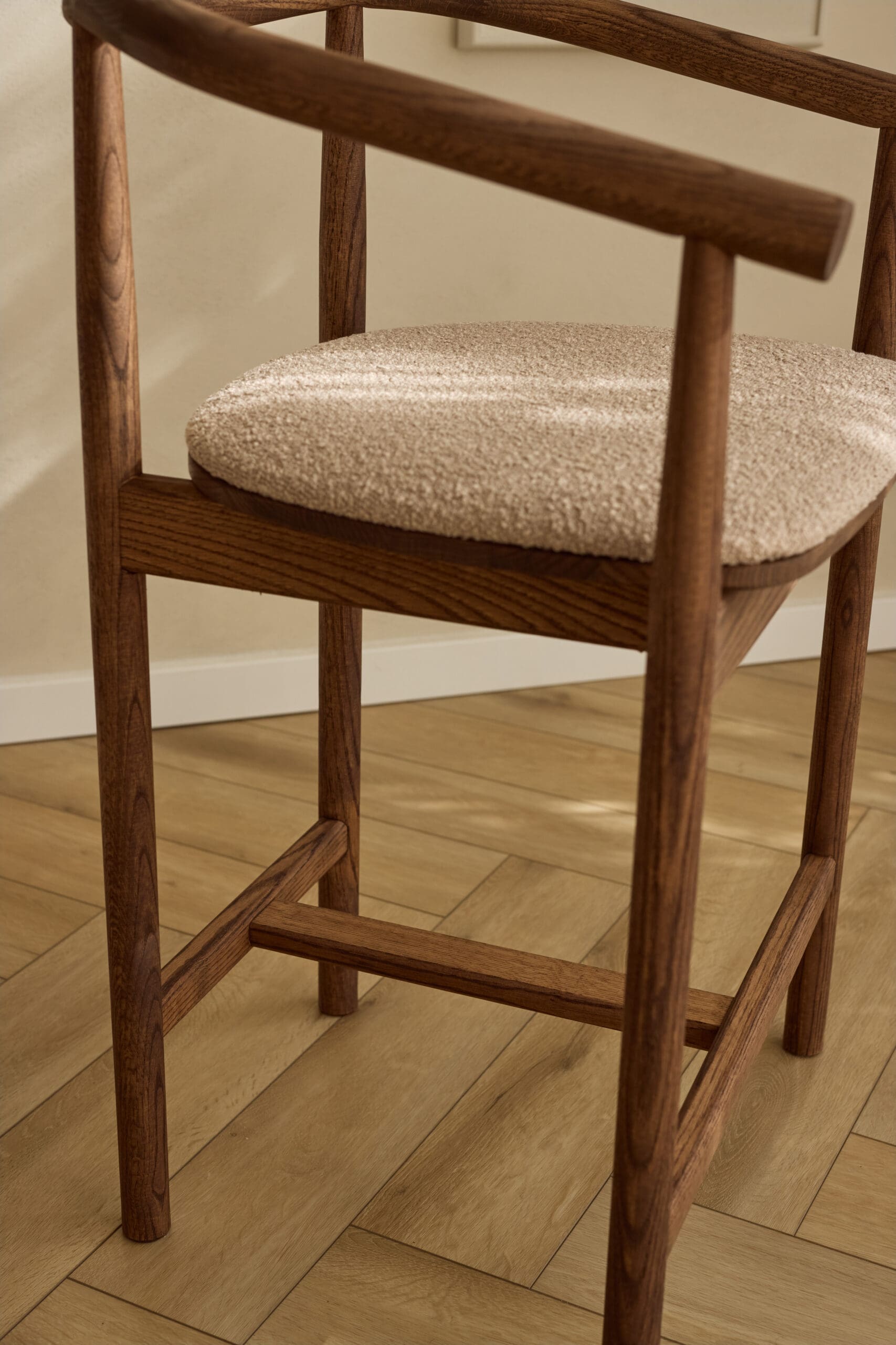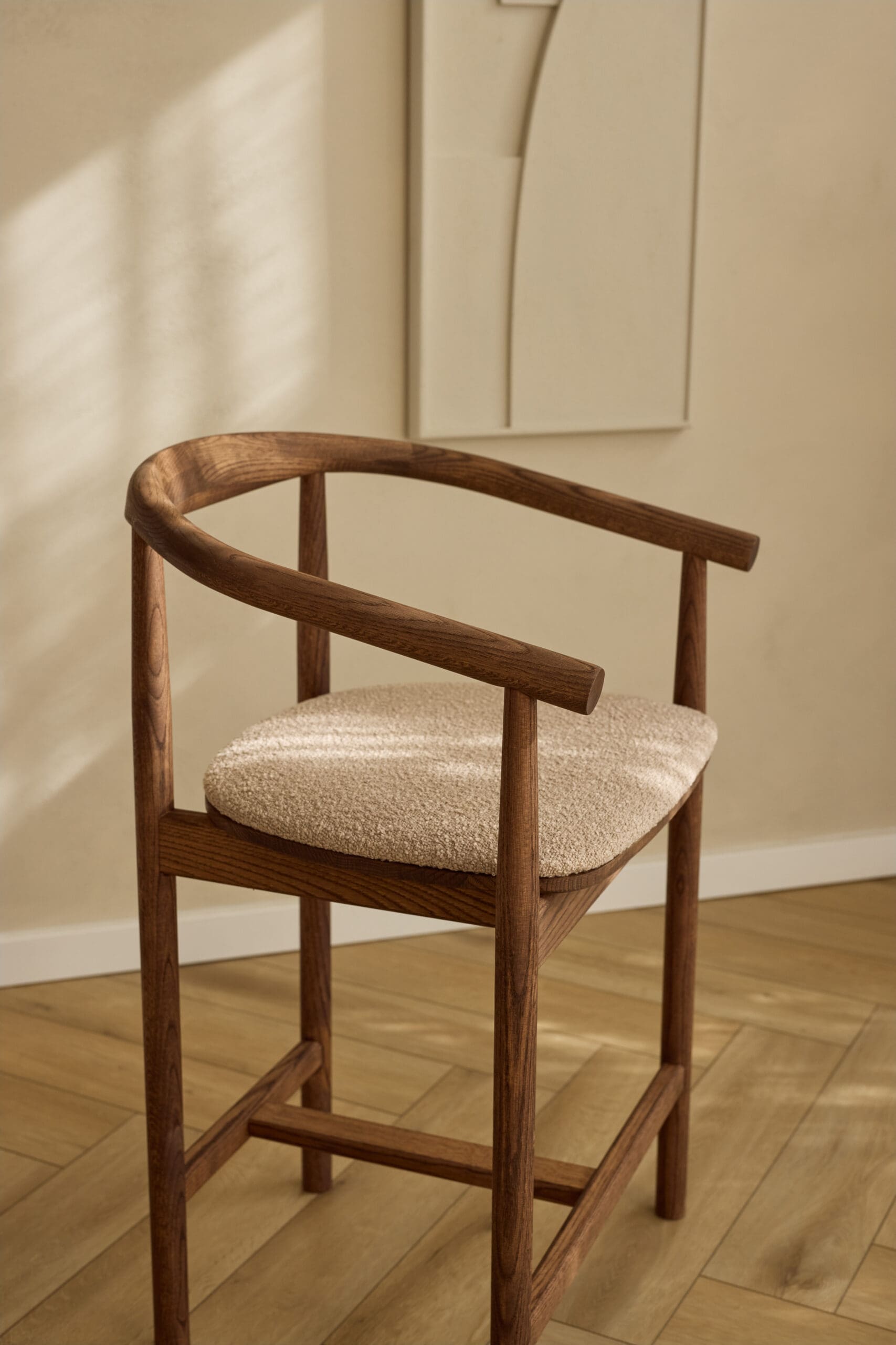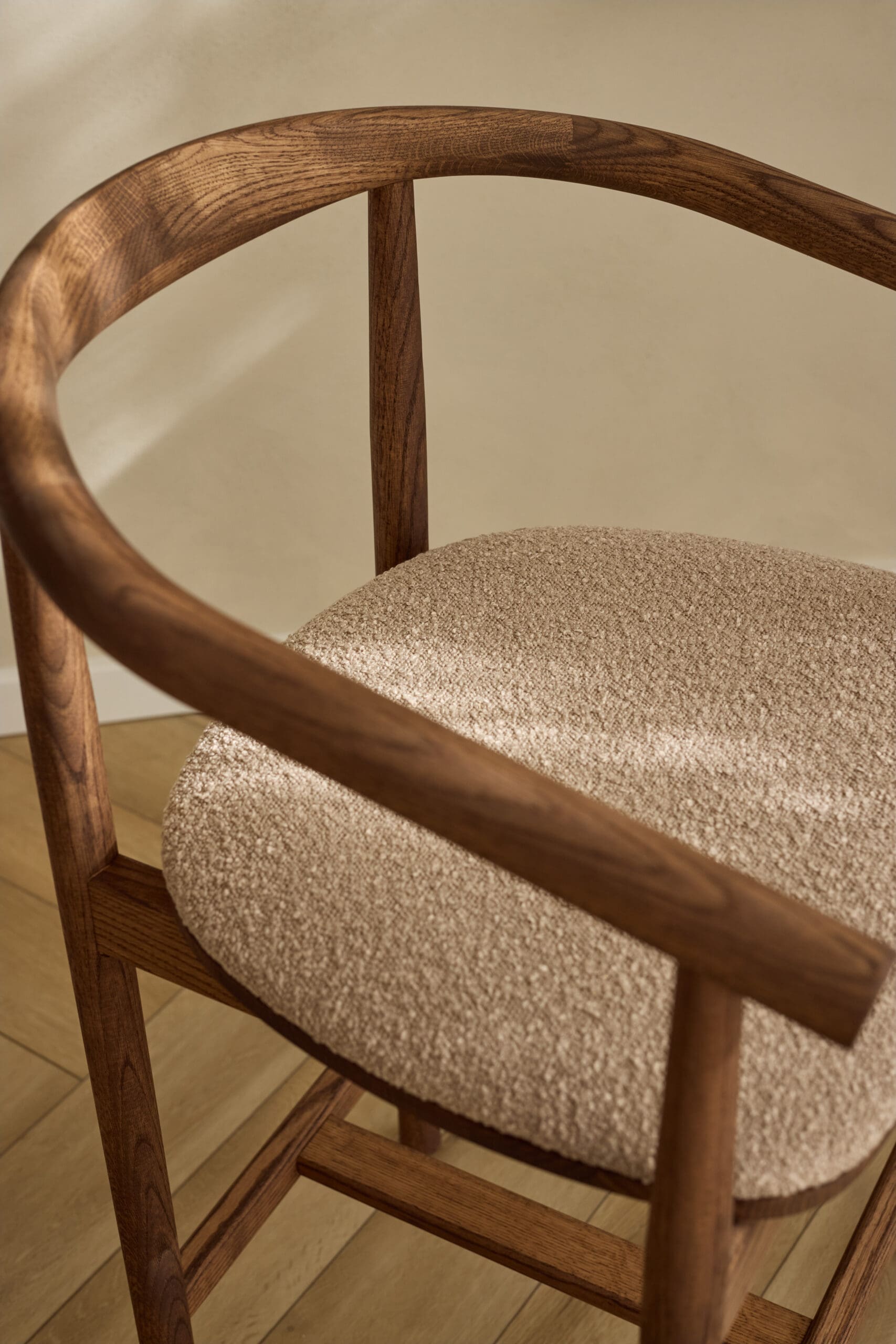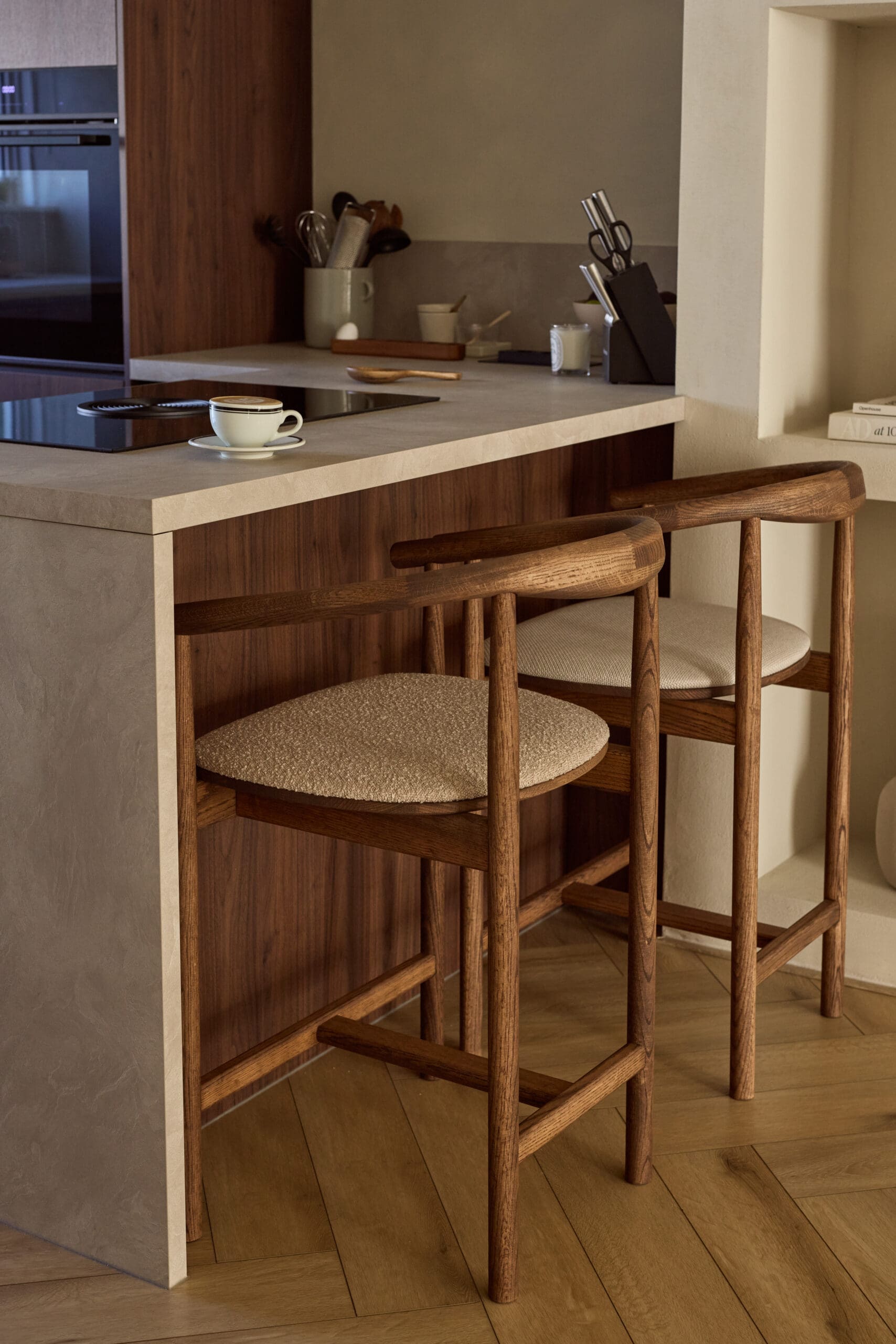 Transformeer jouw ruimte met onze prachtige eikenhouten barstoelen, geïnspireerd op de harmonieuze mix van Japandi en Scandinavische stijl. Een perfect evenwicht tussen elegantie en eenvoud, deze barstoelen brengen warmte en verfijning in elk interieur. Het prachtige minimalistische design van de ‘Calm’ barstoelen is in staat om elk interieur om te toveren tot een oase van rust en kalmte. Gemaakt van eikenhout. Het combineert op vakkundige wijze zachte kleuren in de stof en afwerking met een ergonomische constructie die zorgt voor comfortabele zit- en rugsteun.