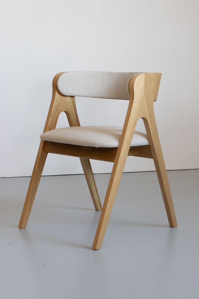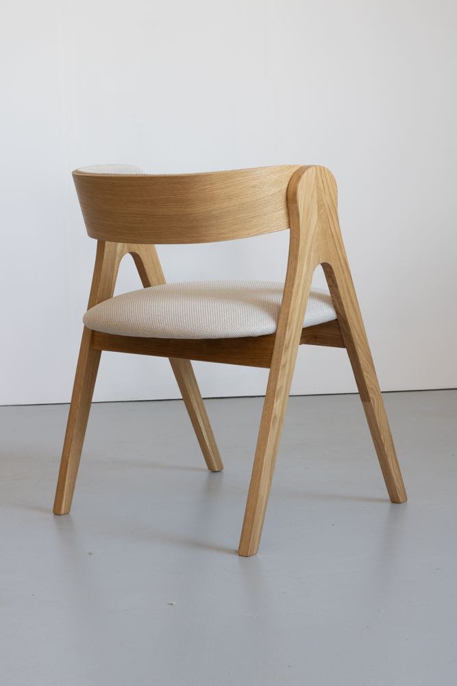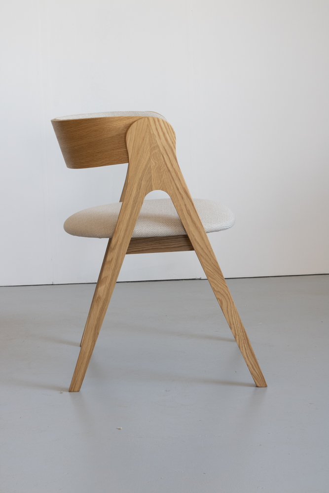 Designer stoel Anna in naturel eiken met creme bekleding.