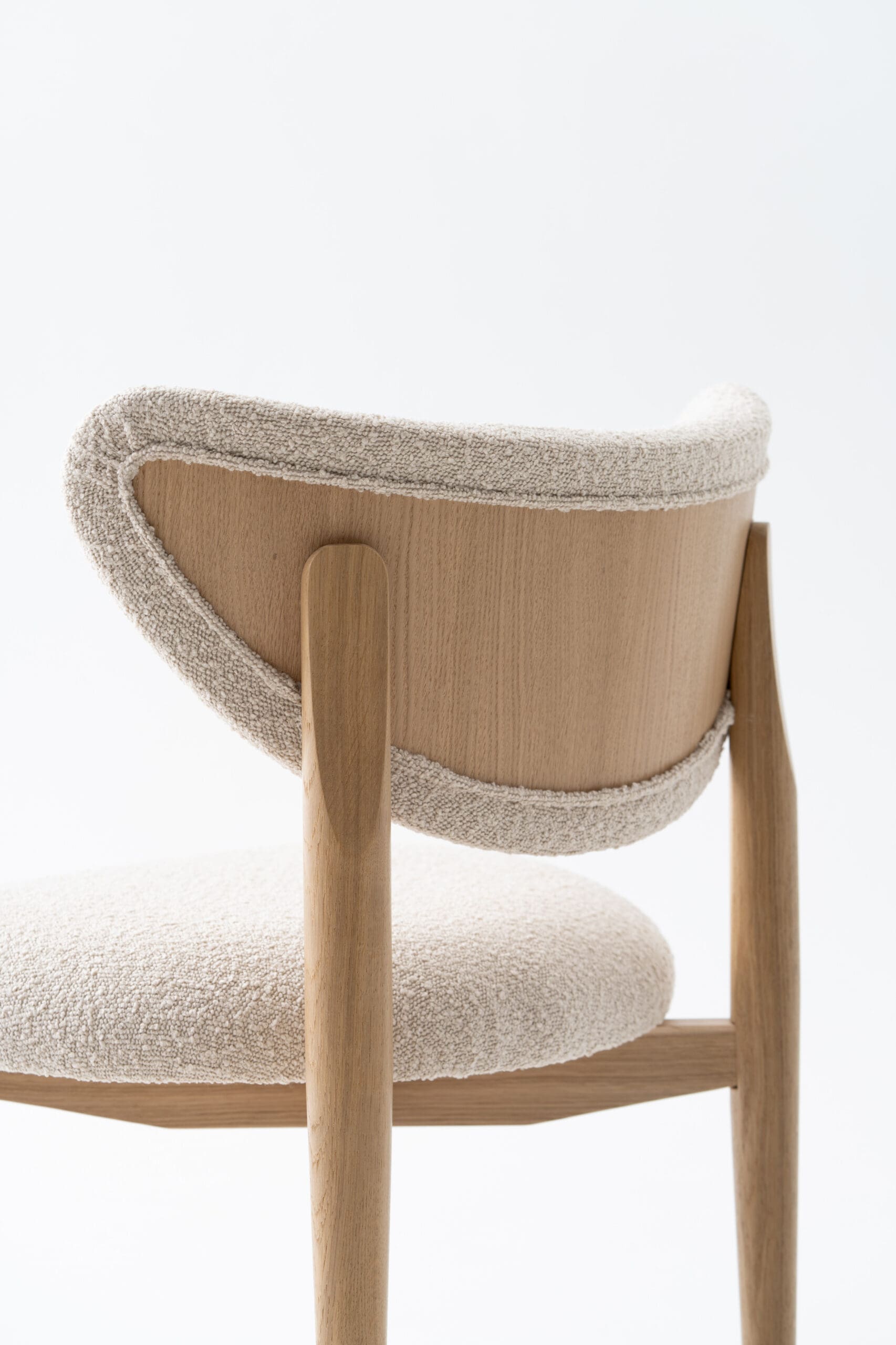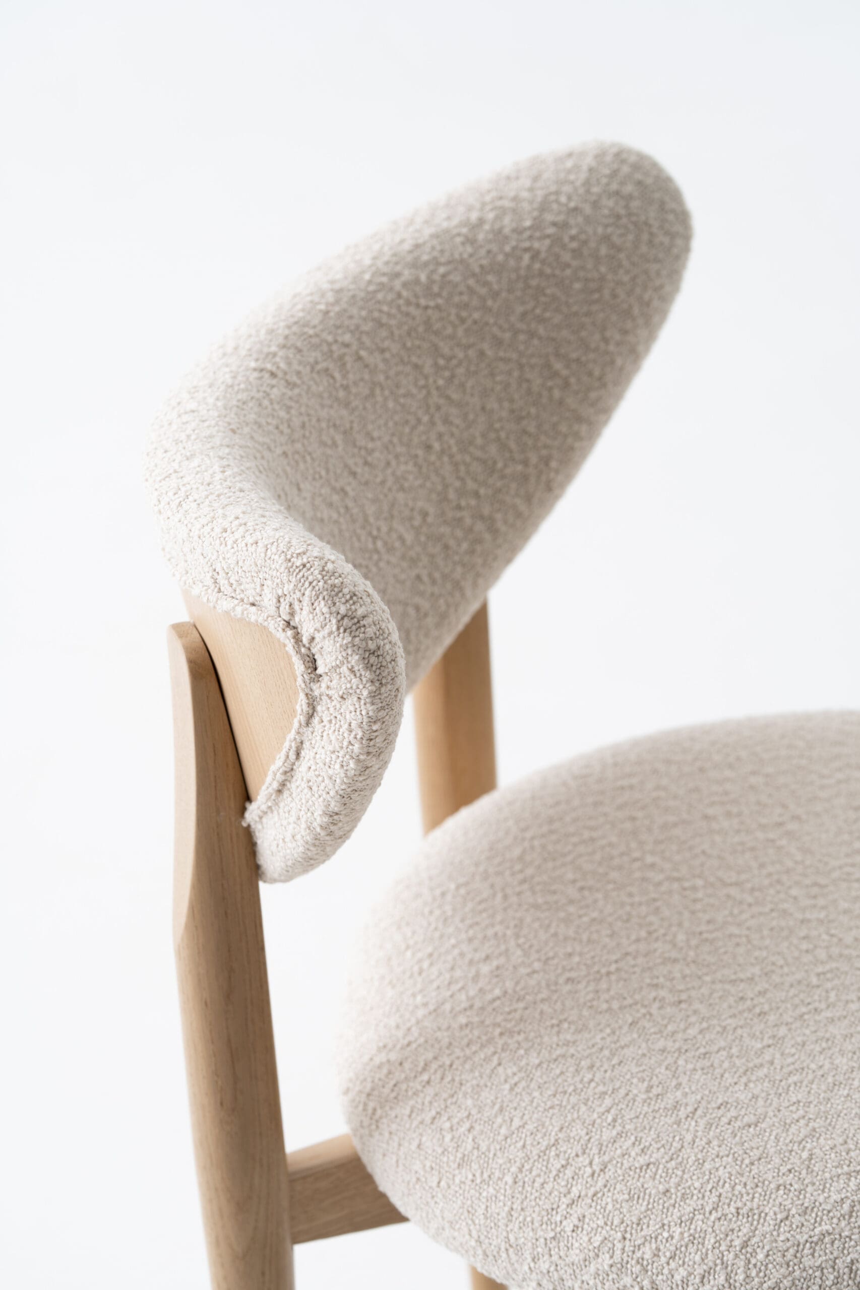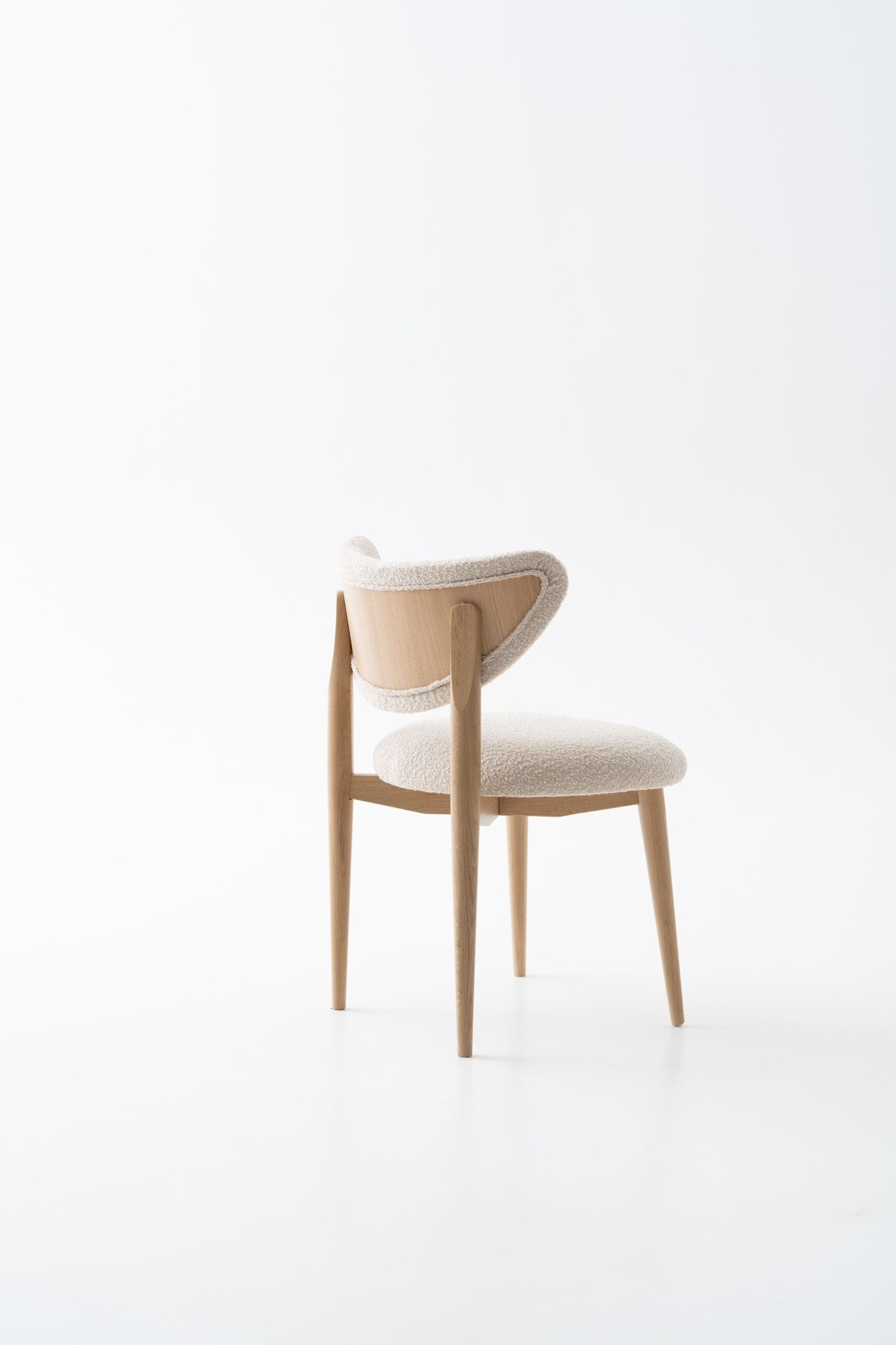 Ontdek de elegantie van eenvoud. Onze designer eetkamerstoel Bloom met maanvormige rugleuning combineert tijdloos comfort met een unieke, organische vorm.