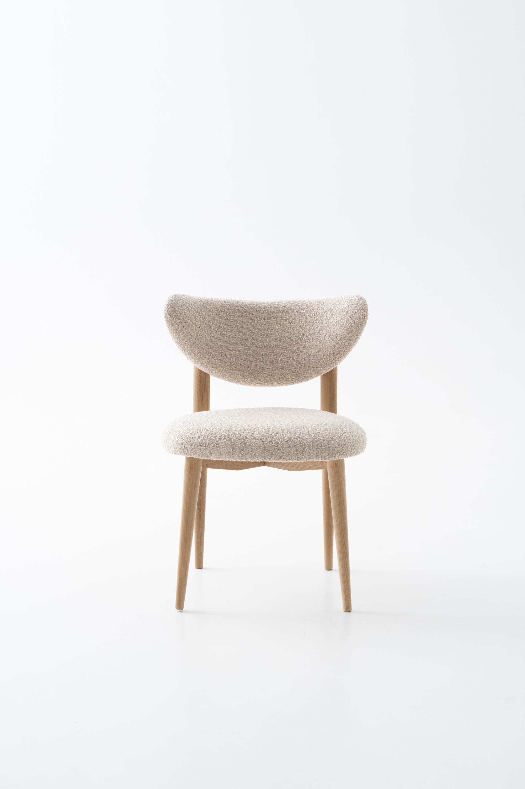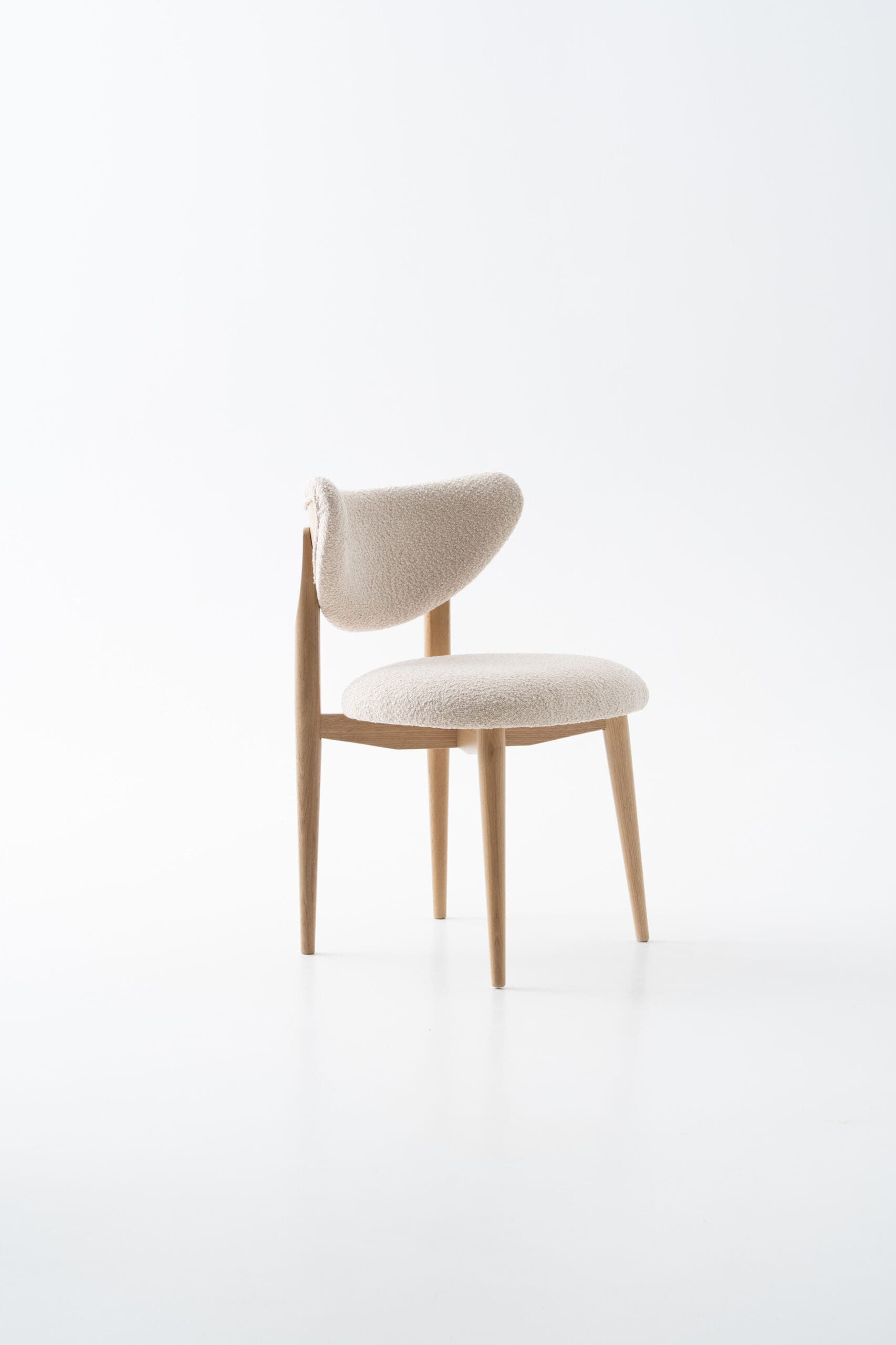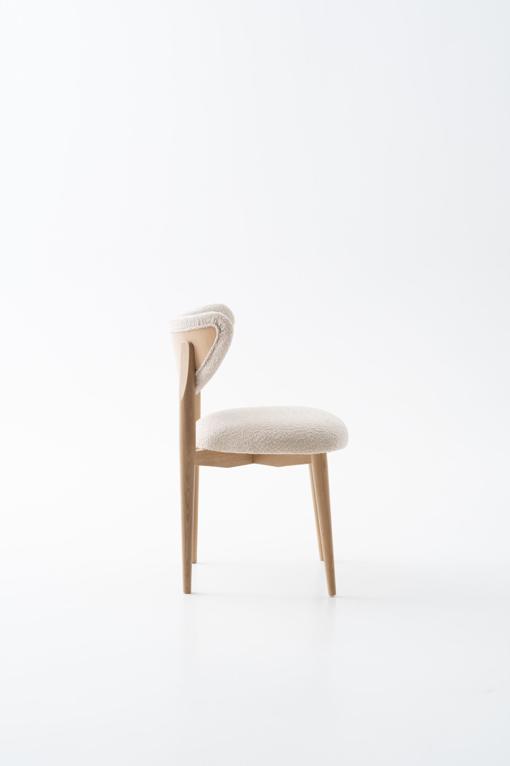 Ontdek de elegantie van eenvoud. Onze designer eetkamerstoel Bloom met maanvormige rugleuning combineert tijdloos comfort met een unieke, organische vorm.