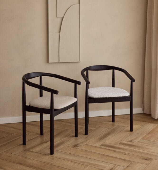 Transformeer uw ruimte met onze prachtige eikenhouten stoelen, geïnspireerd op de harmonieuze mix van Japandi en Scandinavische stijl. Een perfect evenwicht tussen elegantie en eenvoud, deze stoelen brengen warmte en verfijning in elk interieur. Het prachtige minimalistische design van de ‘Calm’ stoelen is in staat om elk interieur om te toveren tot een oase van rust en kalmte. Het combineert op vakkundige wijze zachte kleuren in de stof en afwerking met een ergonomische constructie die zorgt voor comfortabele zit- en rugsteun.