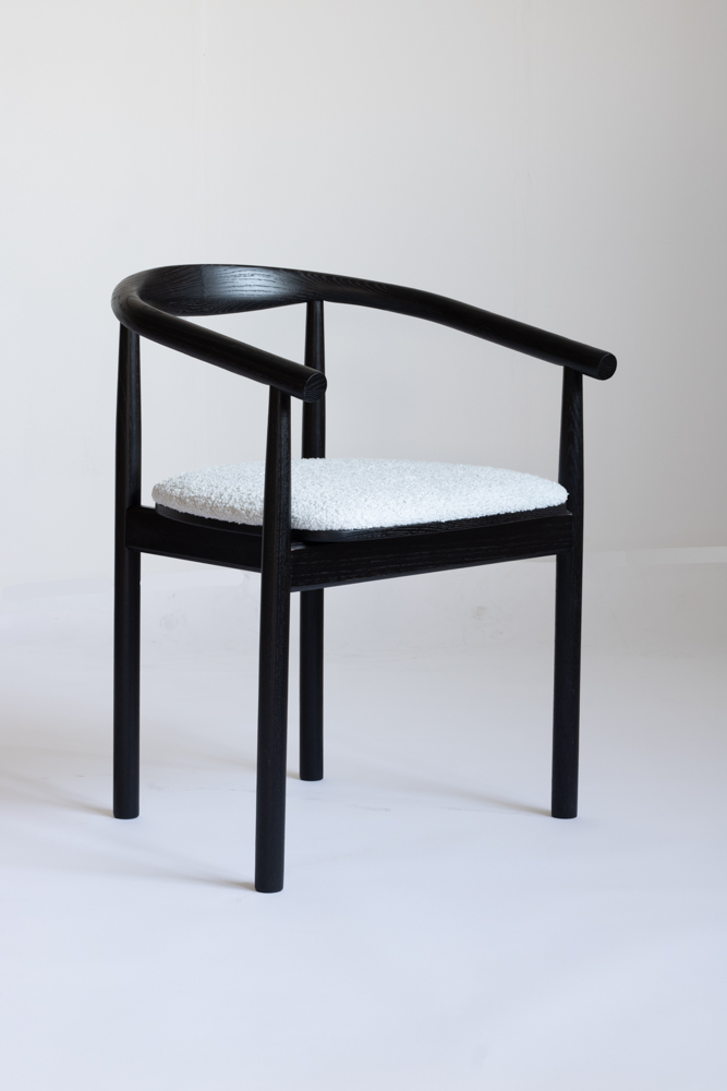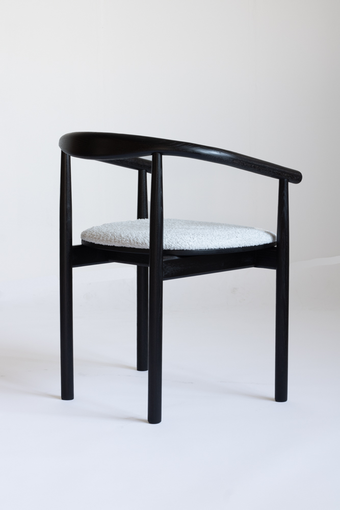Exclusieve eetkamerstoel Calm Black met witte teddystof in Japandi & Scandinavische Stijl!