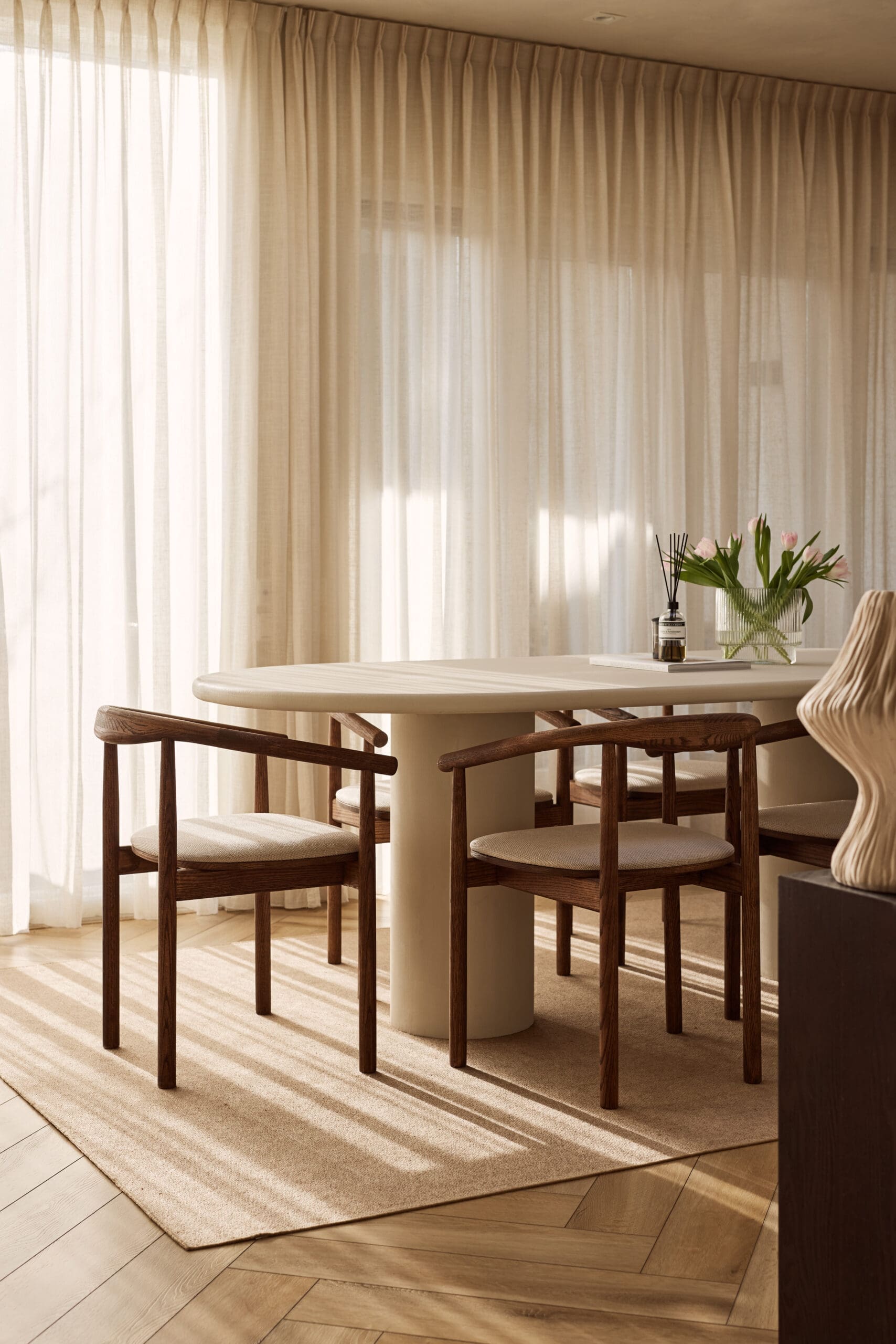 Breng de rustgevende sfeer van Japandi en Scandinavische stijl in jouw huis met onze eikenhouten stoelen. Ervaar de perfecte combinatie van functionaliteit en design. Bestel vandaag nog jouw stoel en creëer een ruimte die rust en schoonheid uitstraalt. Set van 2 stoelen per verpakking (€498), per stuk kosten ze €249.