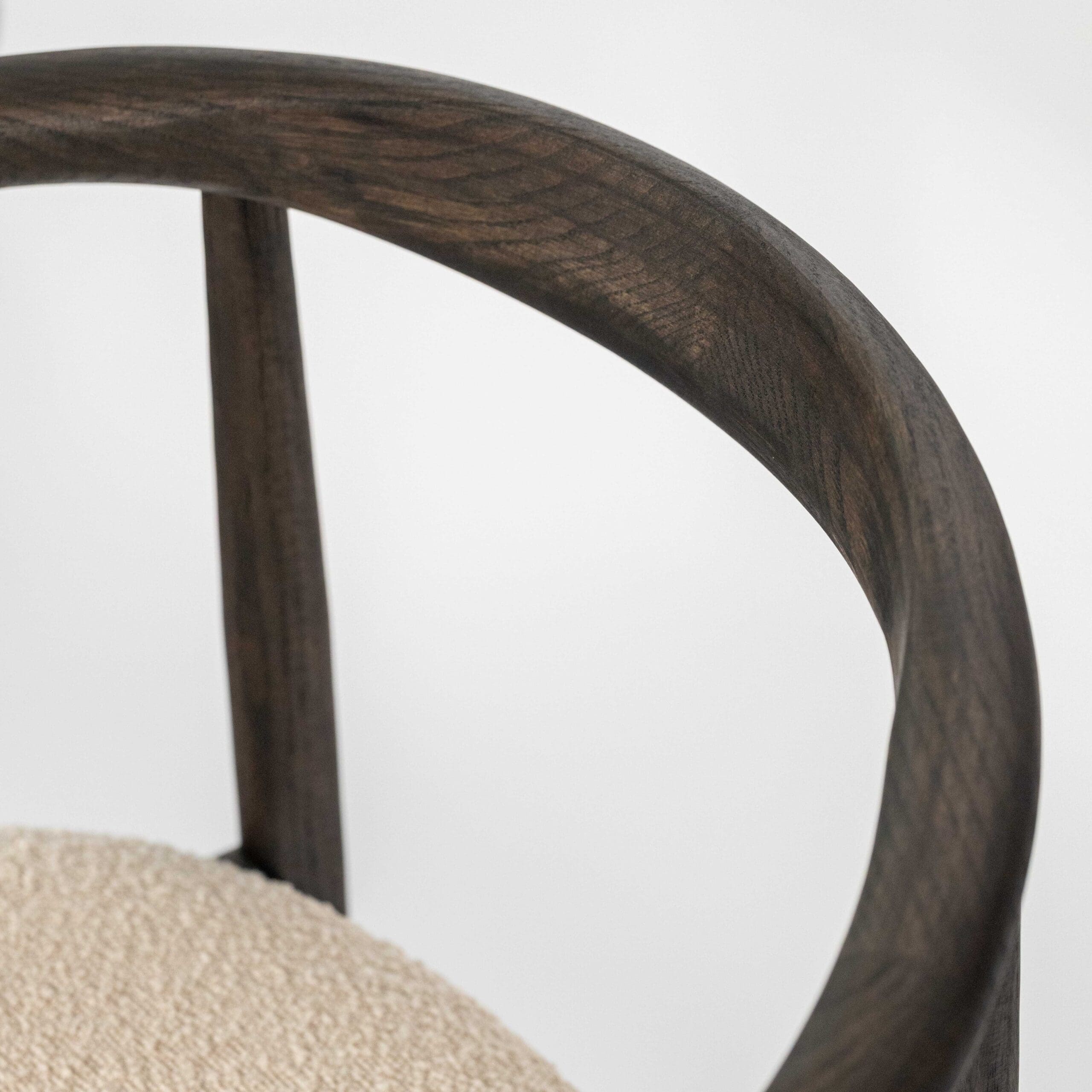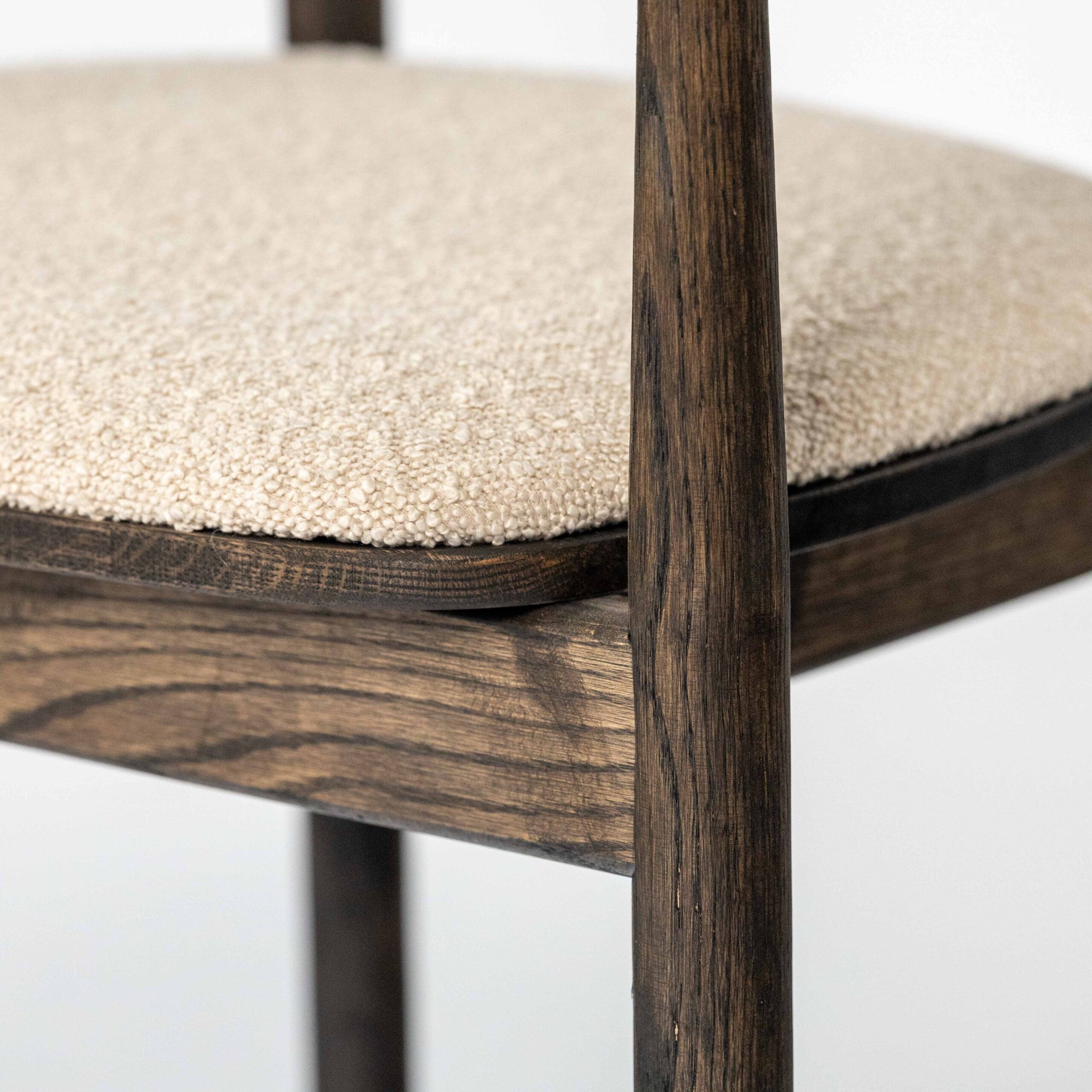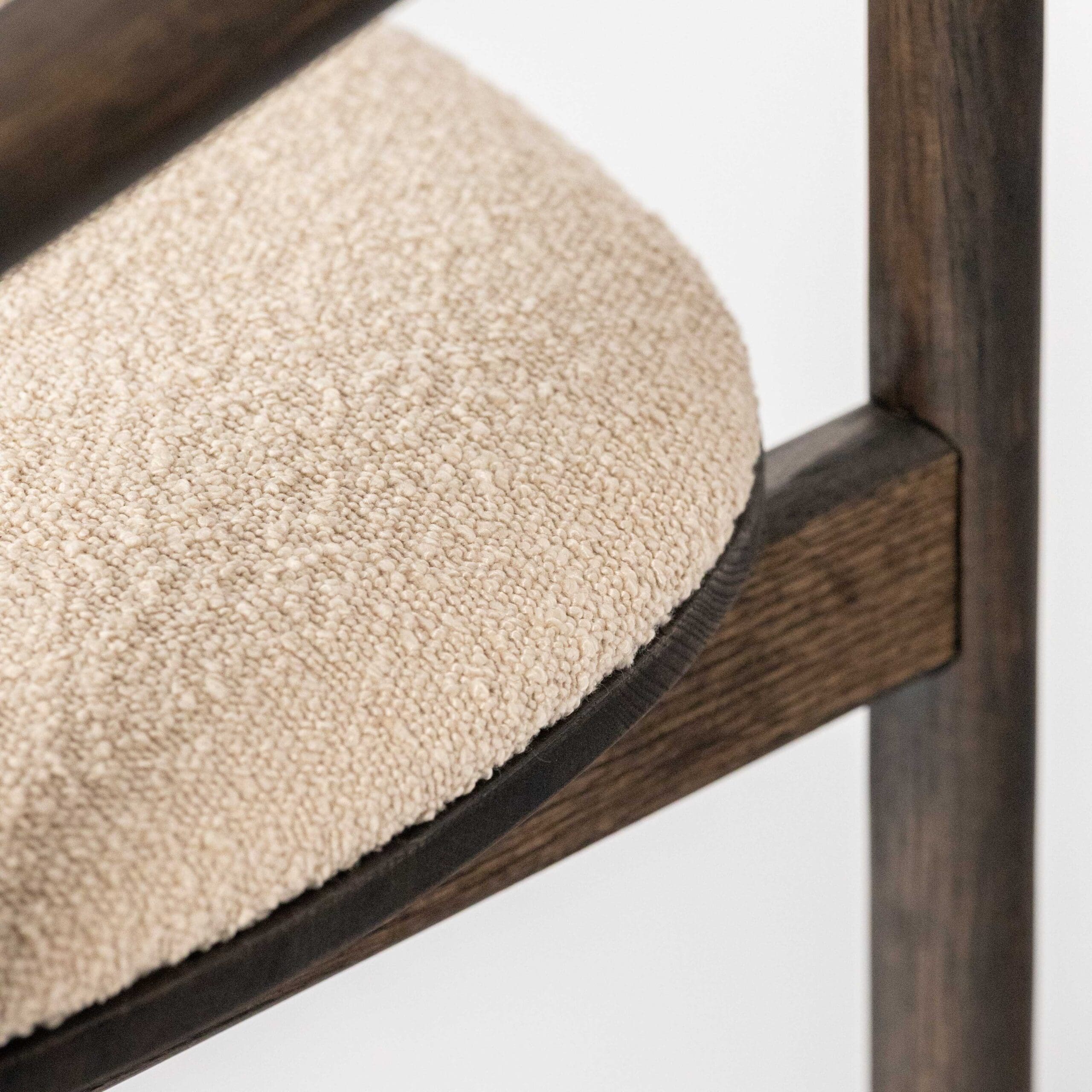 Materiaal: eikenhout en bouclé stof