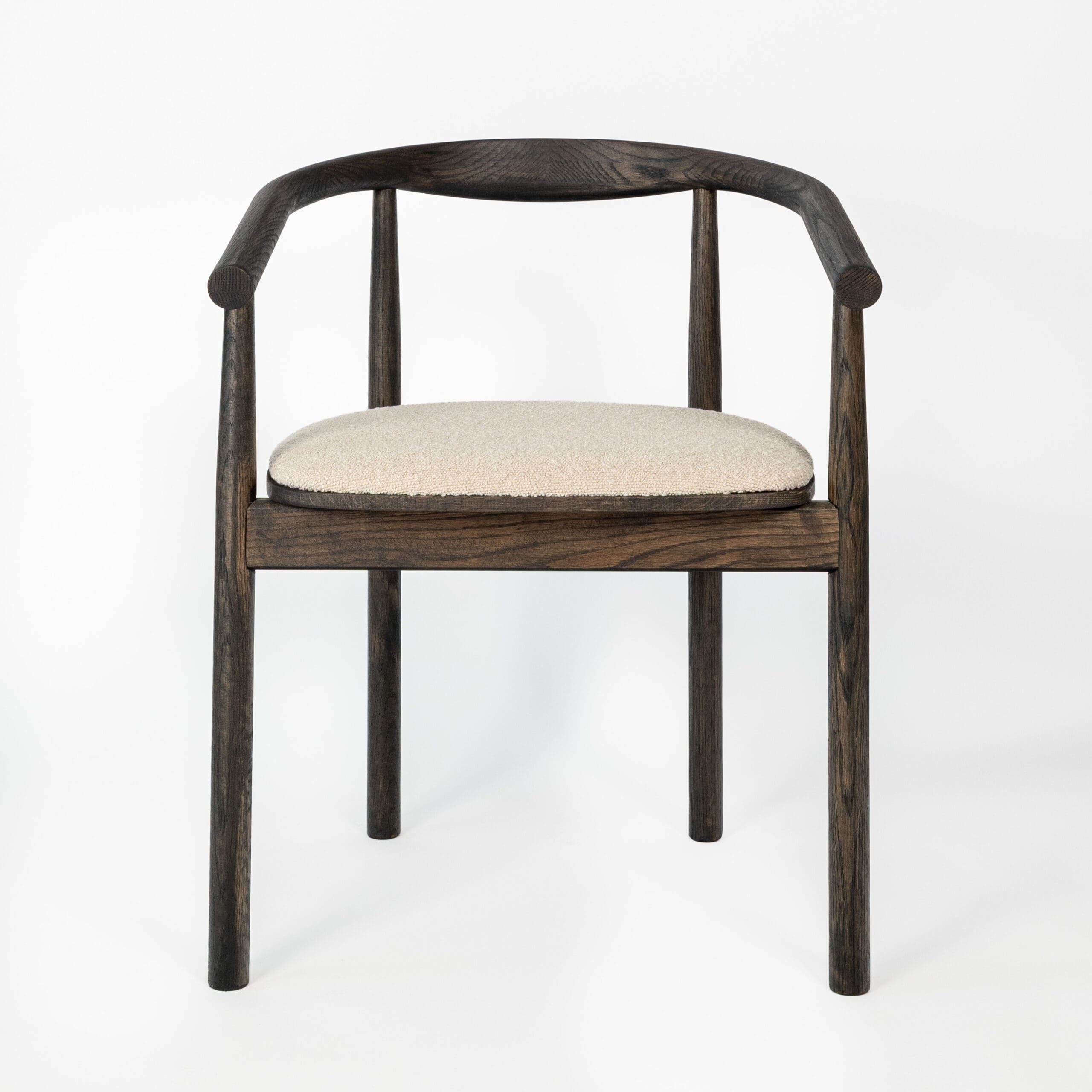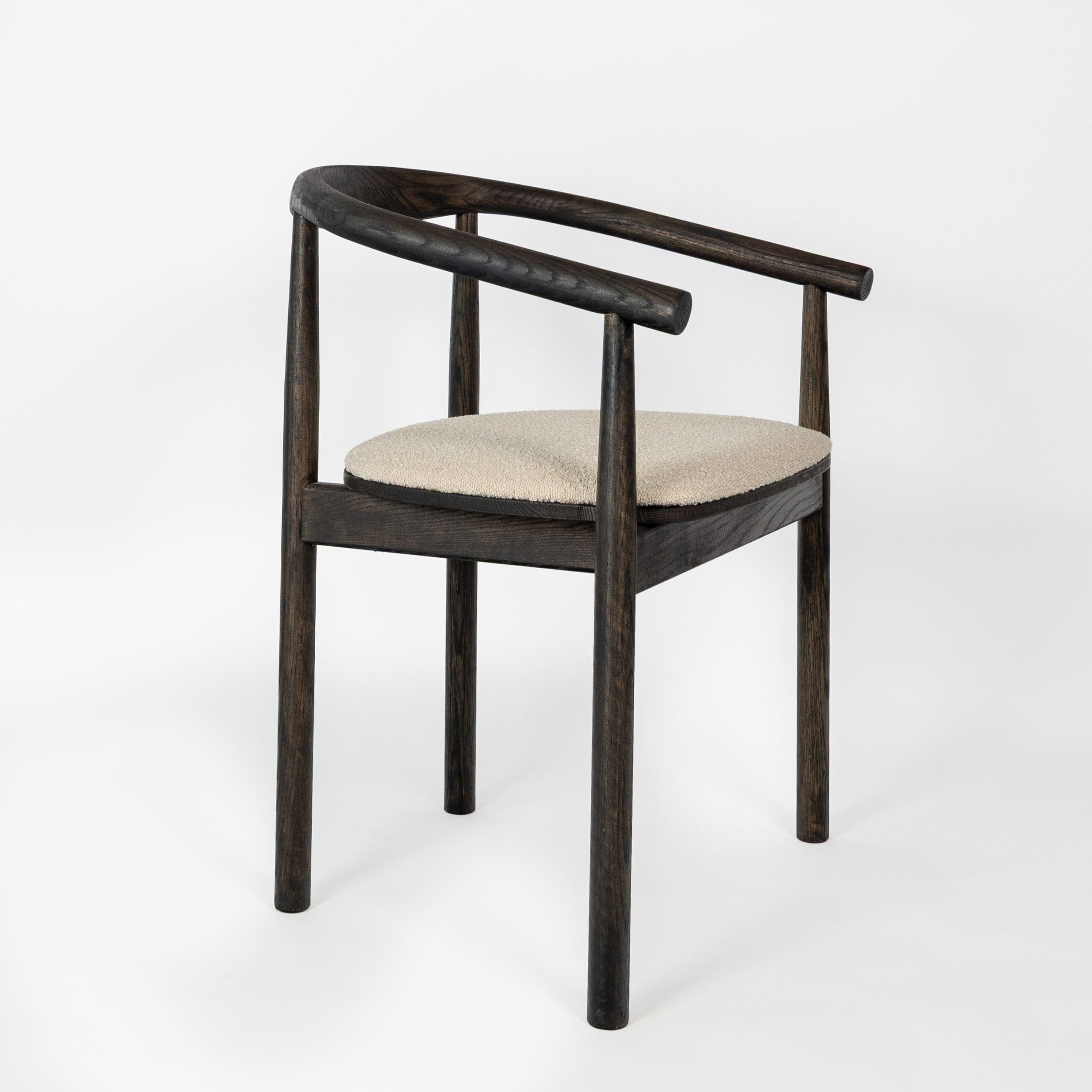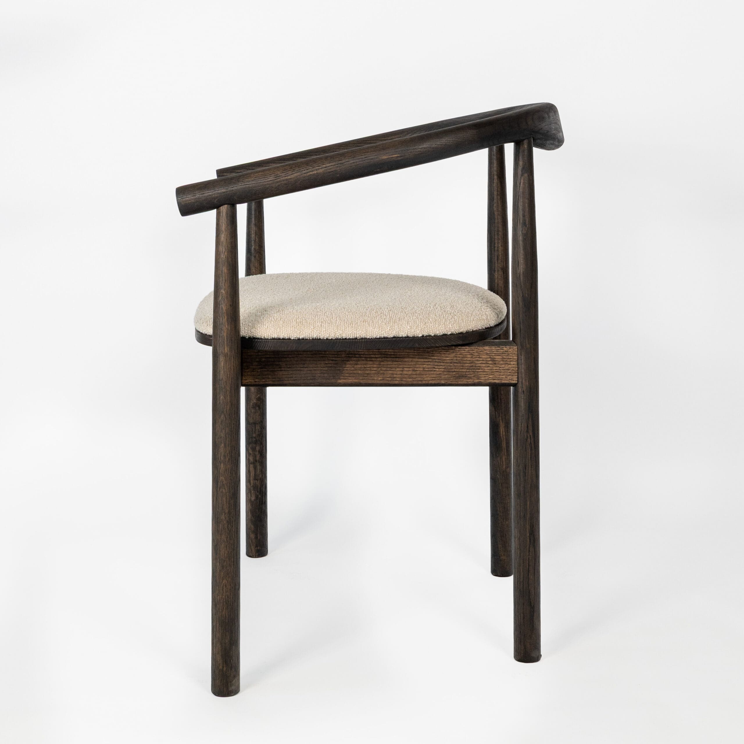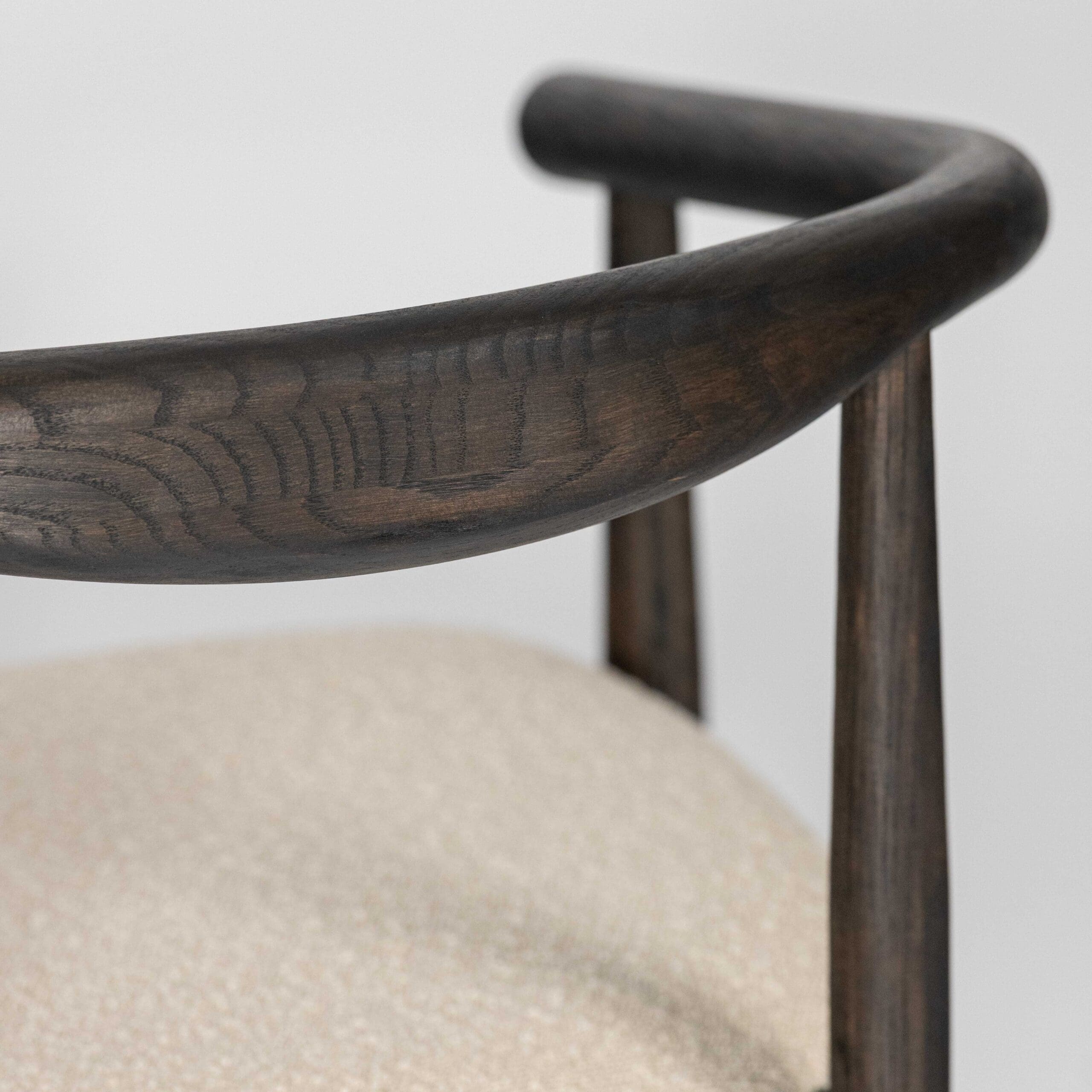 Materiaal: eikenhout en bouclé stof