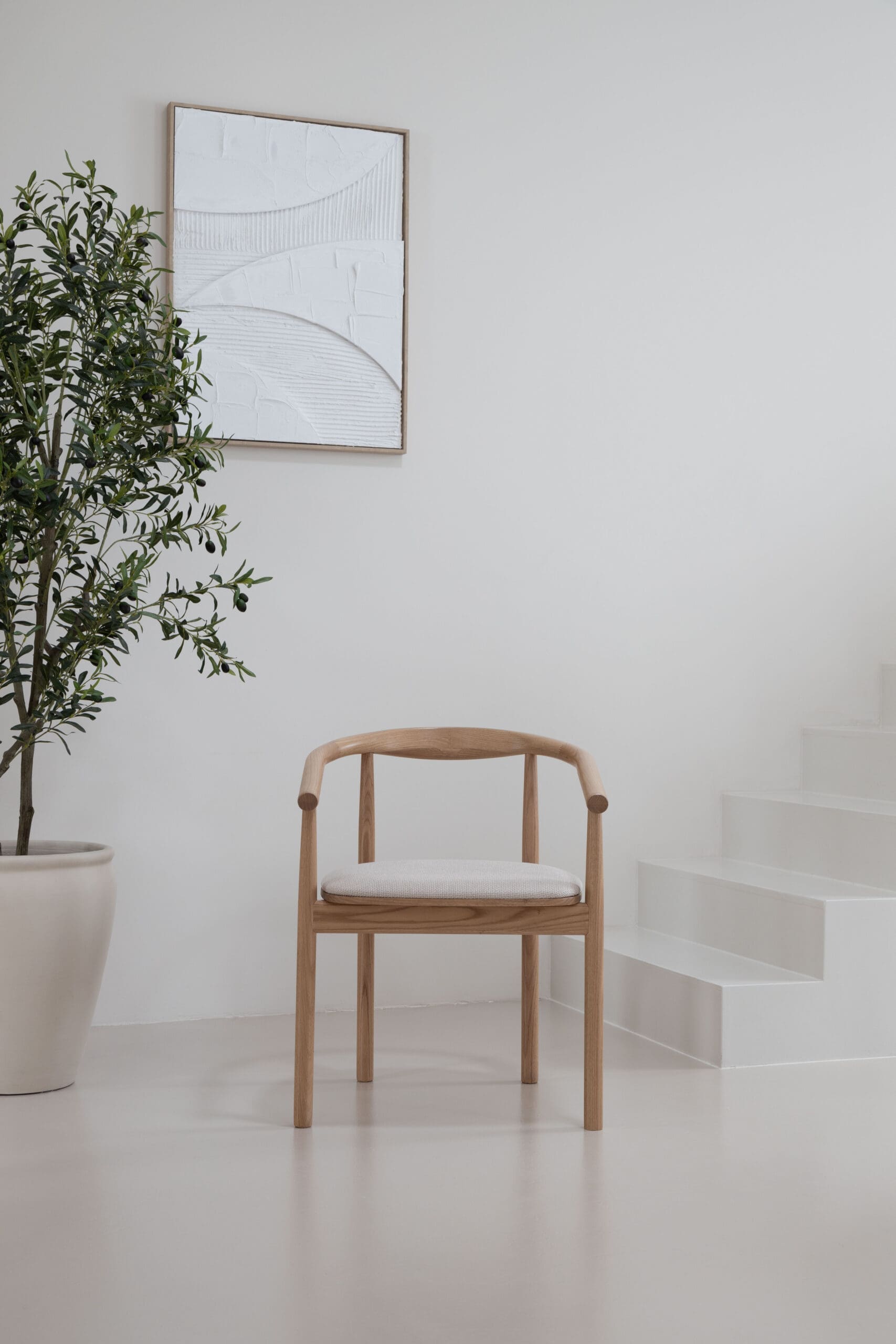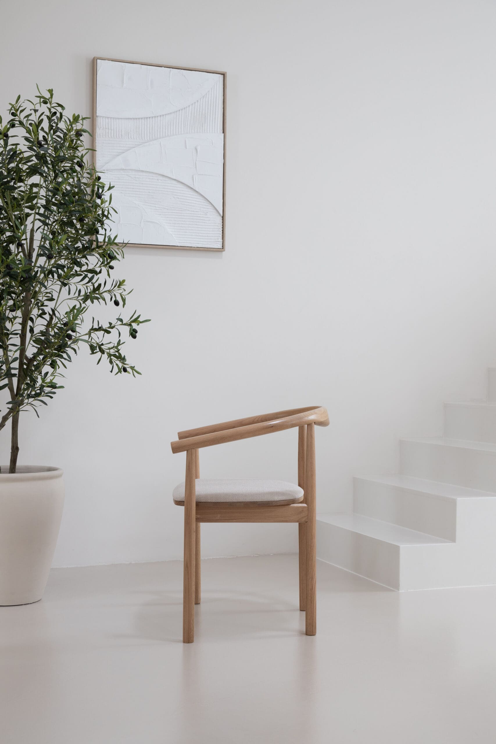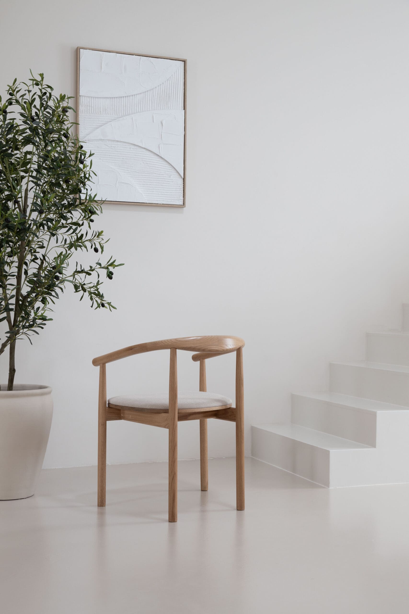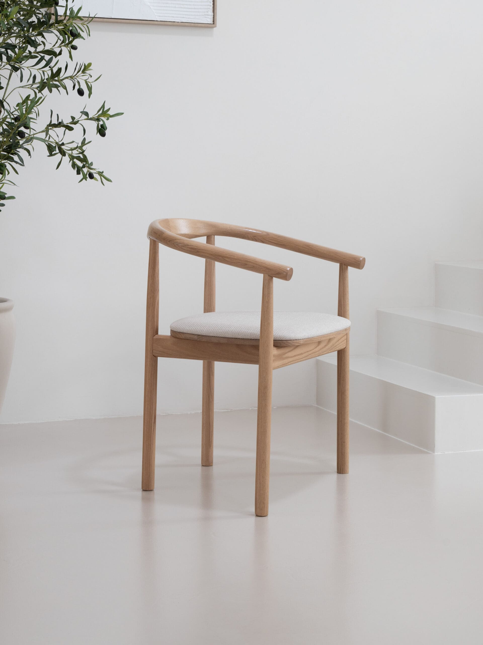Transformeer jouw ruimte met onze prachtige eikenhouten stoelen met armleuning, geïnspireerd op de harmonieuze mix van Japandi en Scandinavische stijl. Een perfect evenwicht tussen elegantie en eenvoud, deze stoelen brengen warmte en verfijning in elk interieur. Het prachtige minimalistische design van de 'Calm' stoelen is in staat om elk interieur om te toveren tot een oase van rust en kalmte. Gemaakt van eikenhout. Het combineert op vakkundige wijze zachte kleuren in de stof en afwerking met een ergonomische constructie die zorgt voor comfortabele zit- en rugsteun. Elk stuk is zorgvuldig vervaardigd om de essentie van de gezellige Japandi-stijl te combineren met de verfijnde eenvoud van Scandinavisch design.