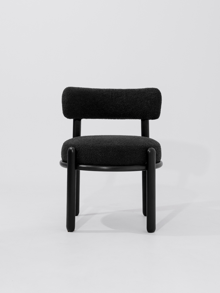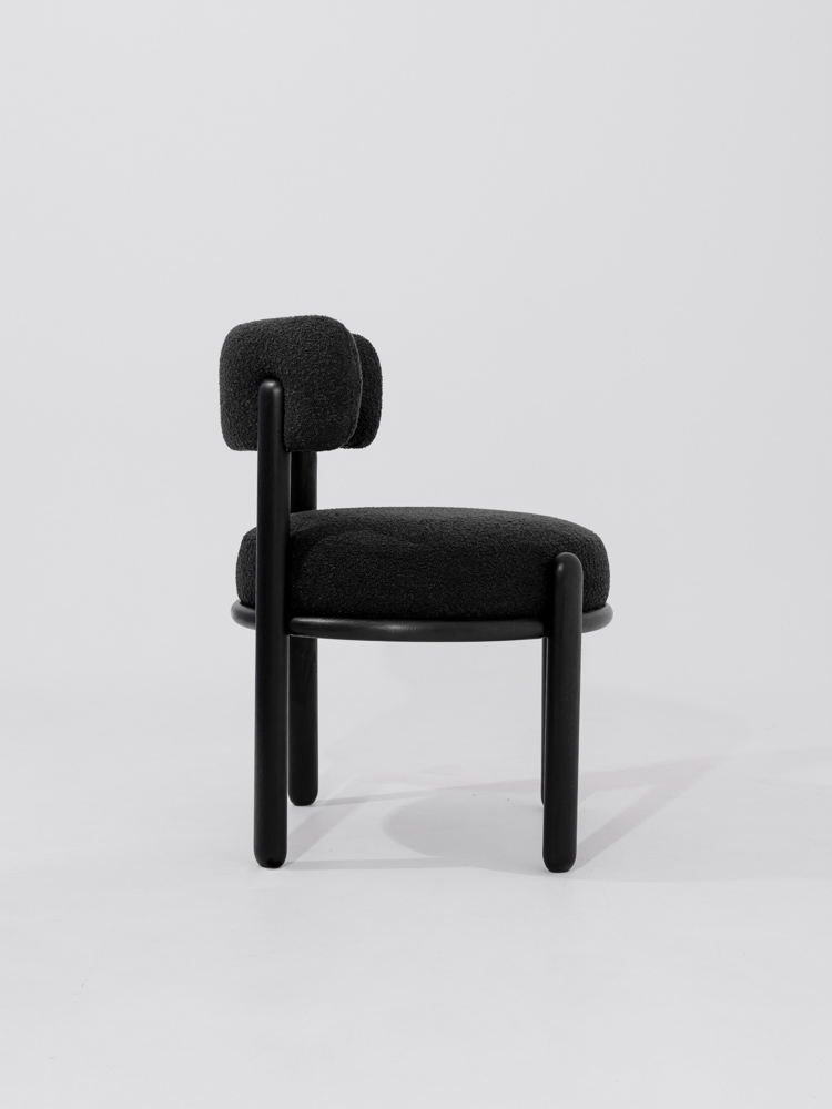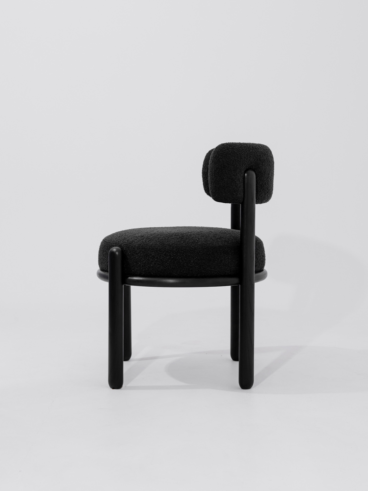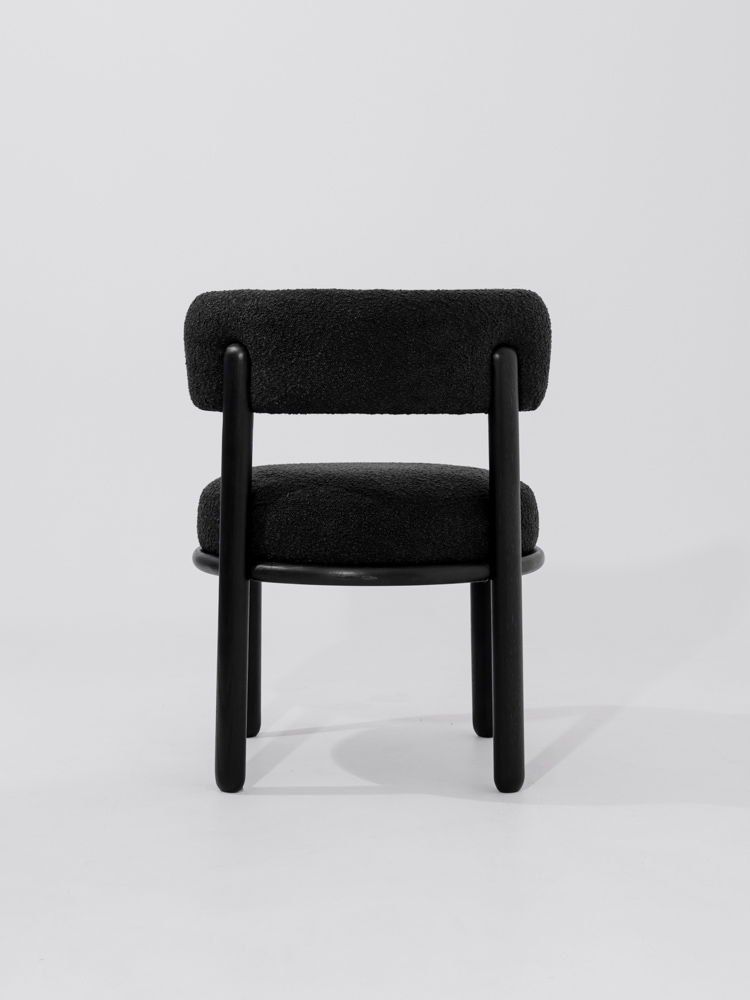 Japandi eetkamerstoel in zwarte eikenhout en stof.