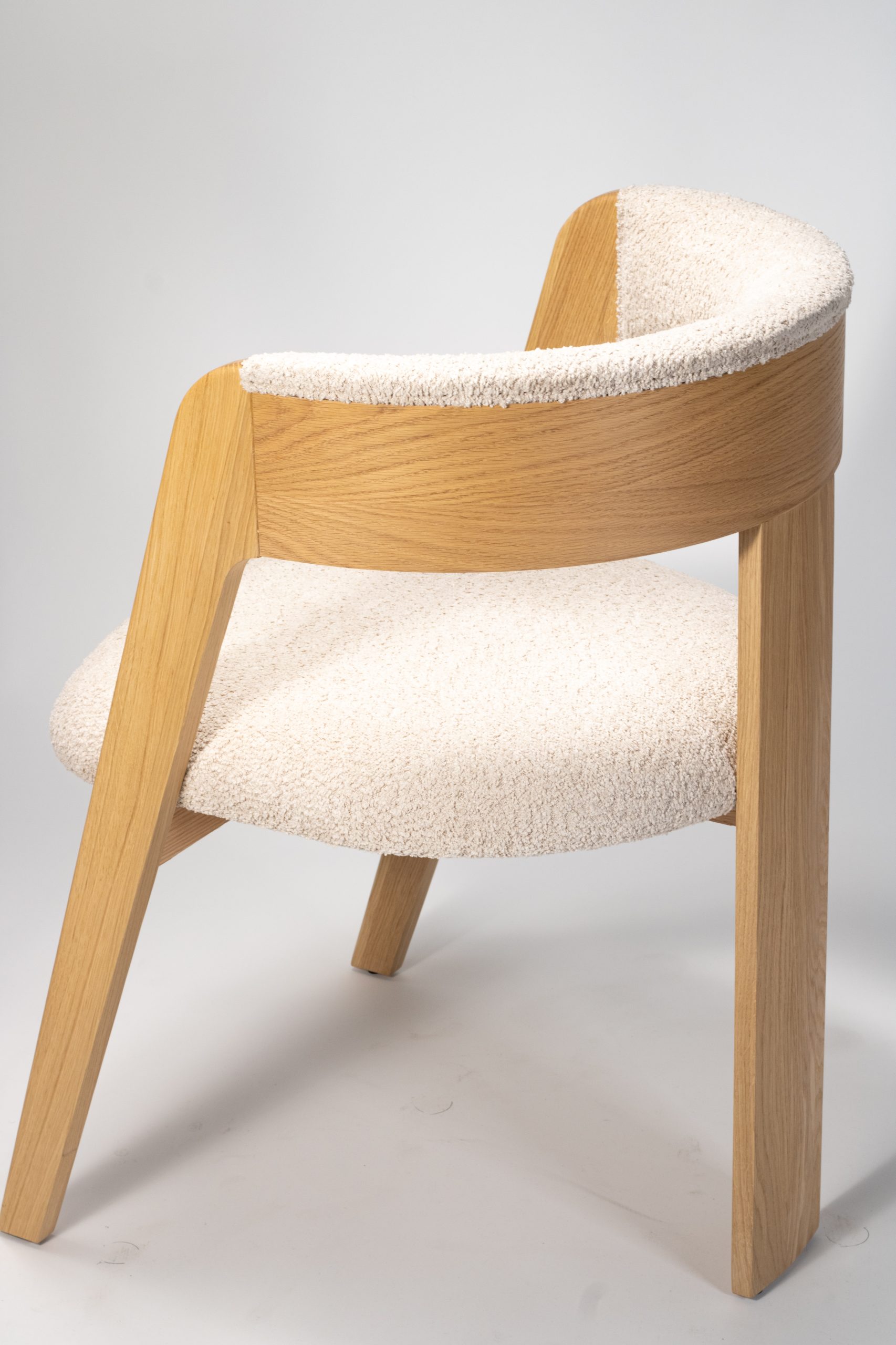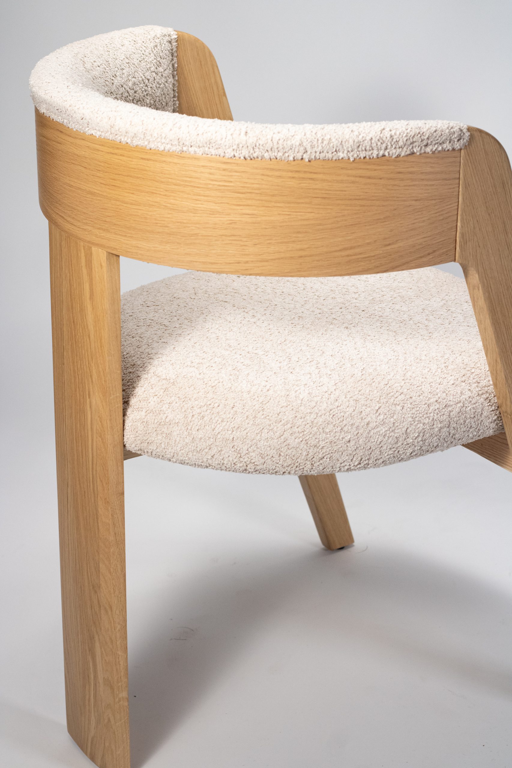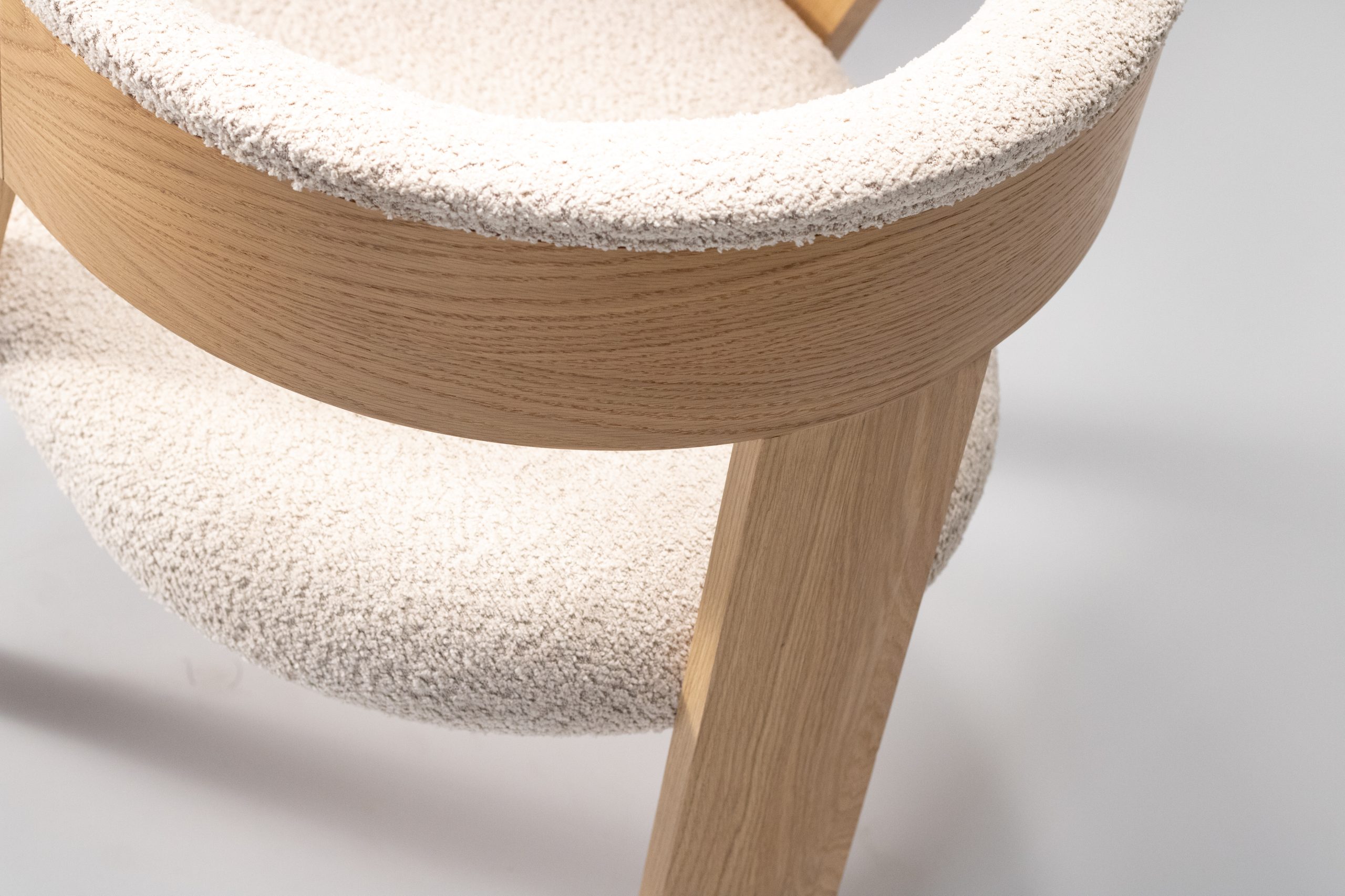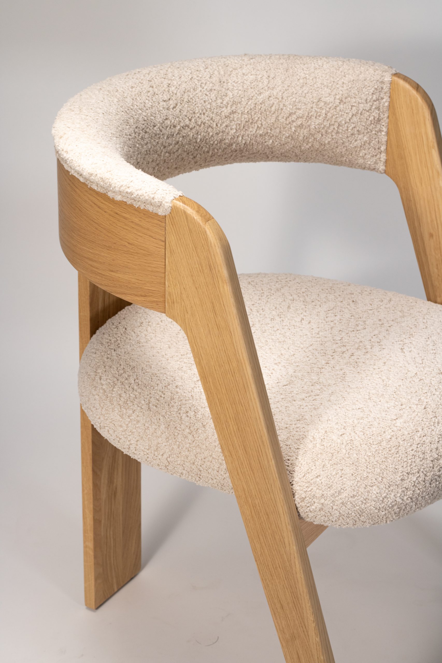 Materiaal: eikenhout en bouclé stof