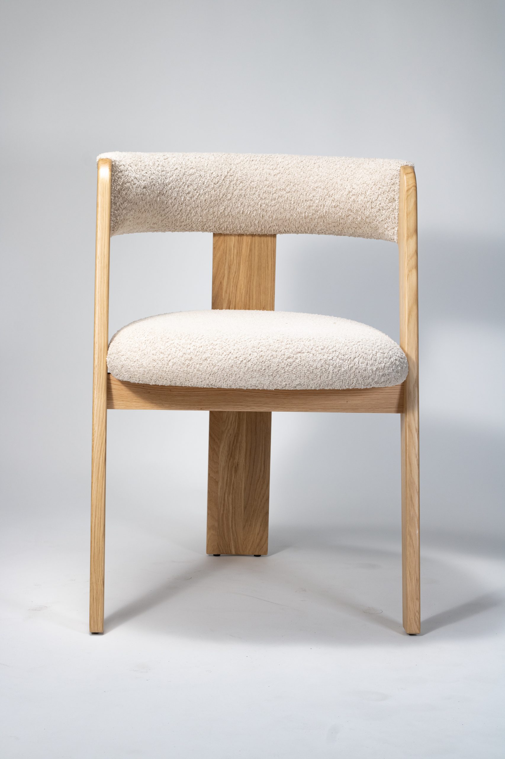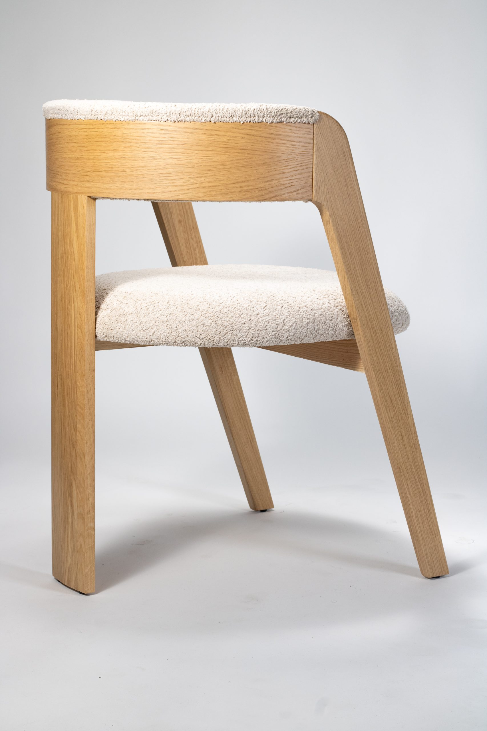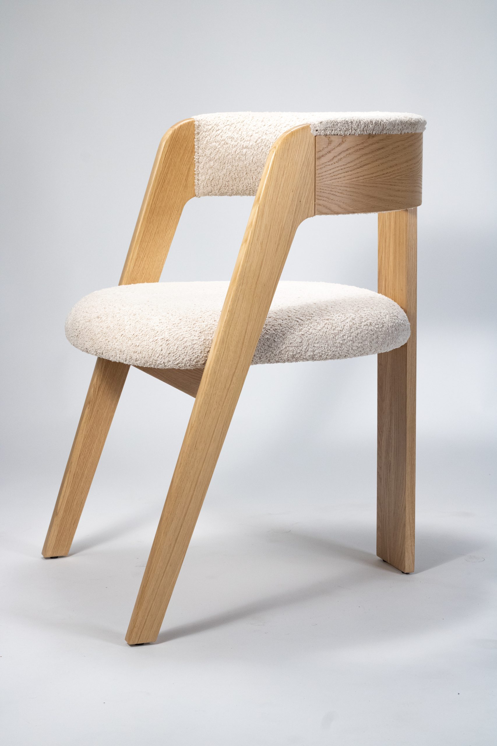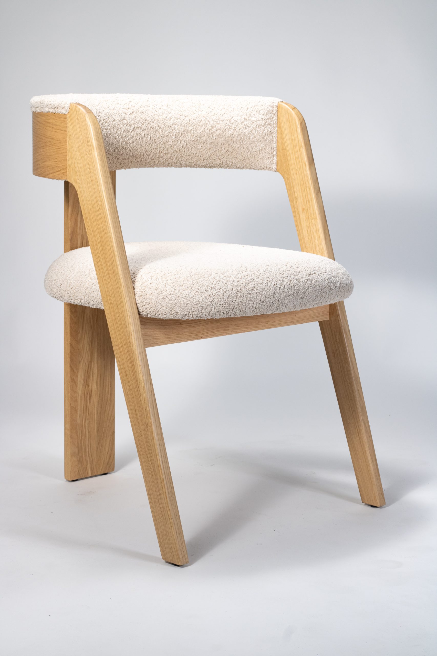 Materiaal: eikenhout en bouclé stof