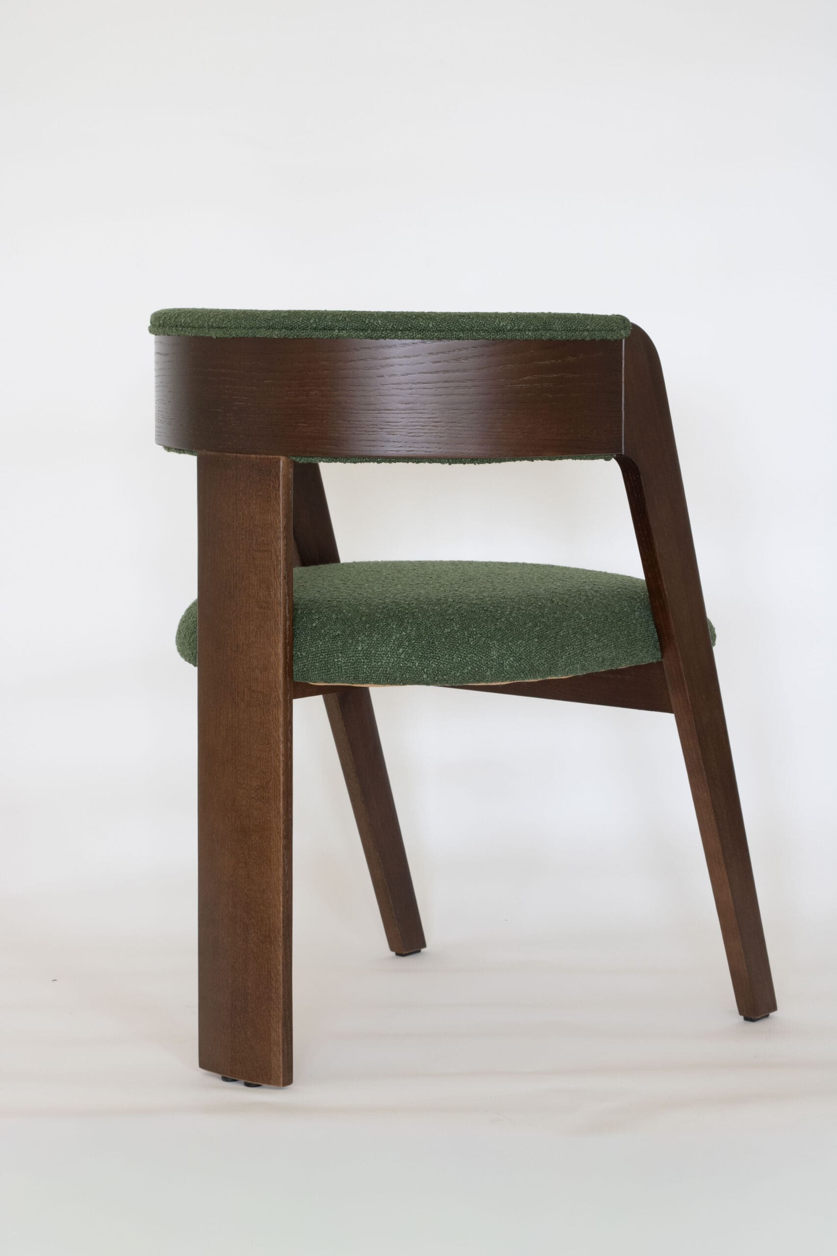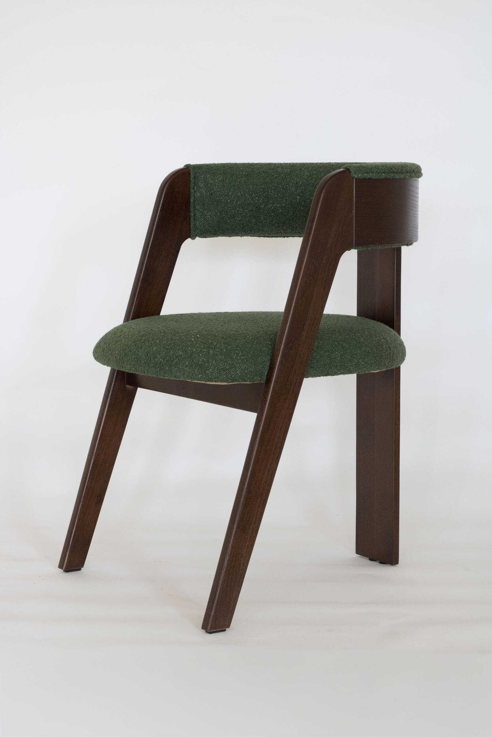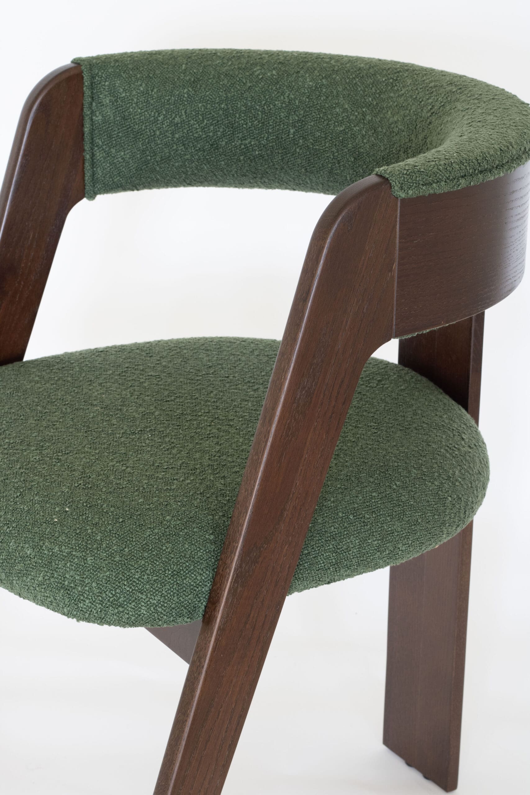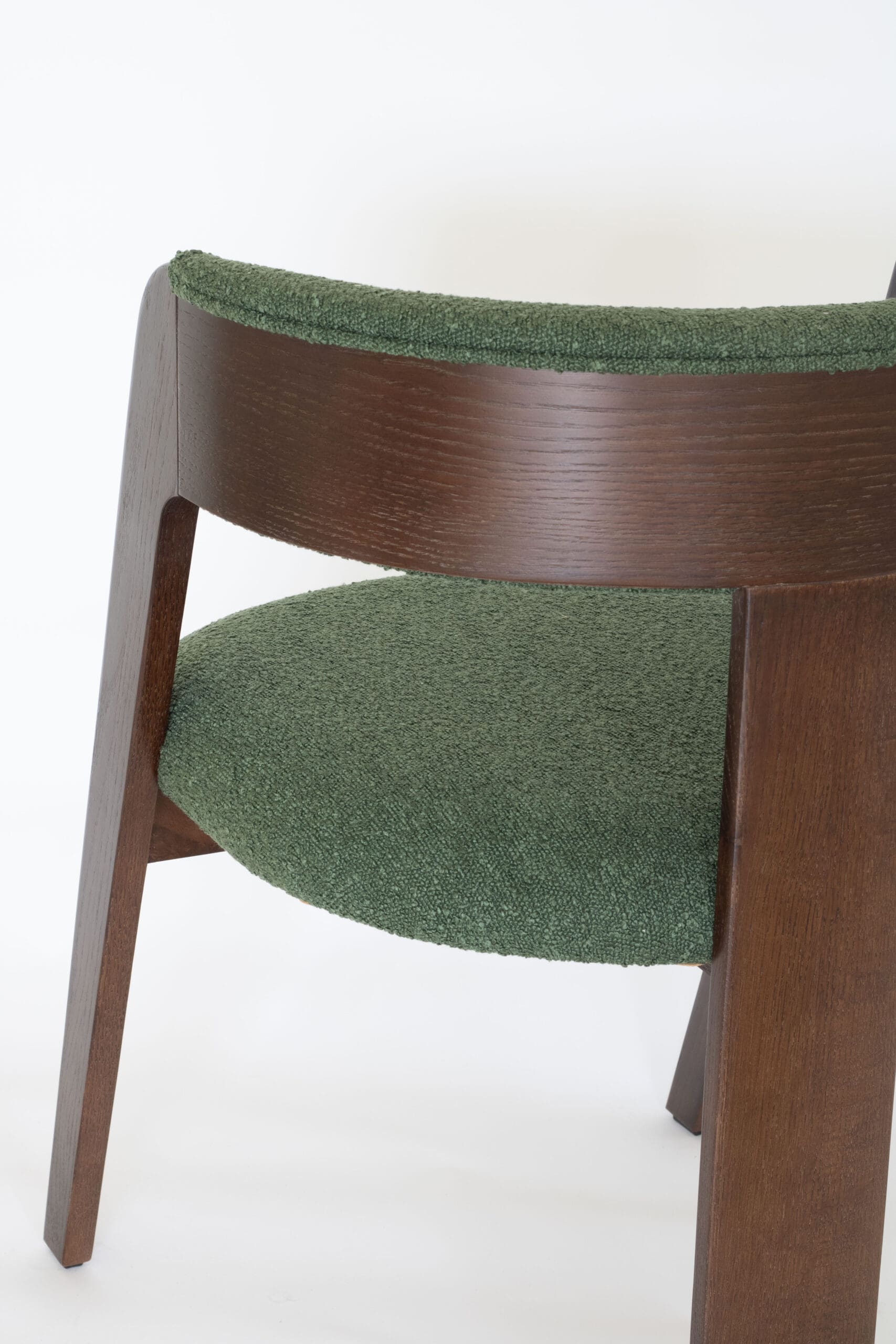 Kleur: Walnoot met donker groen bouclé stof