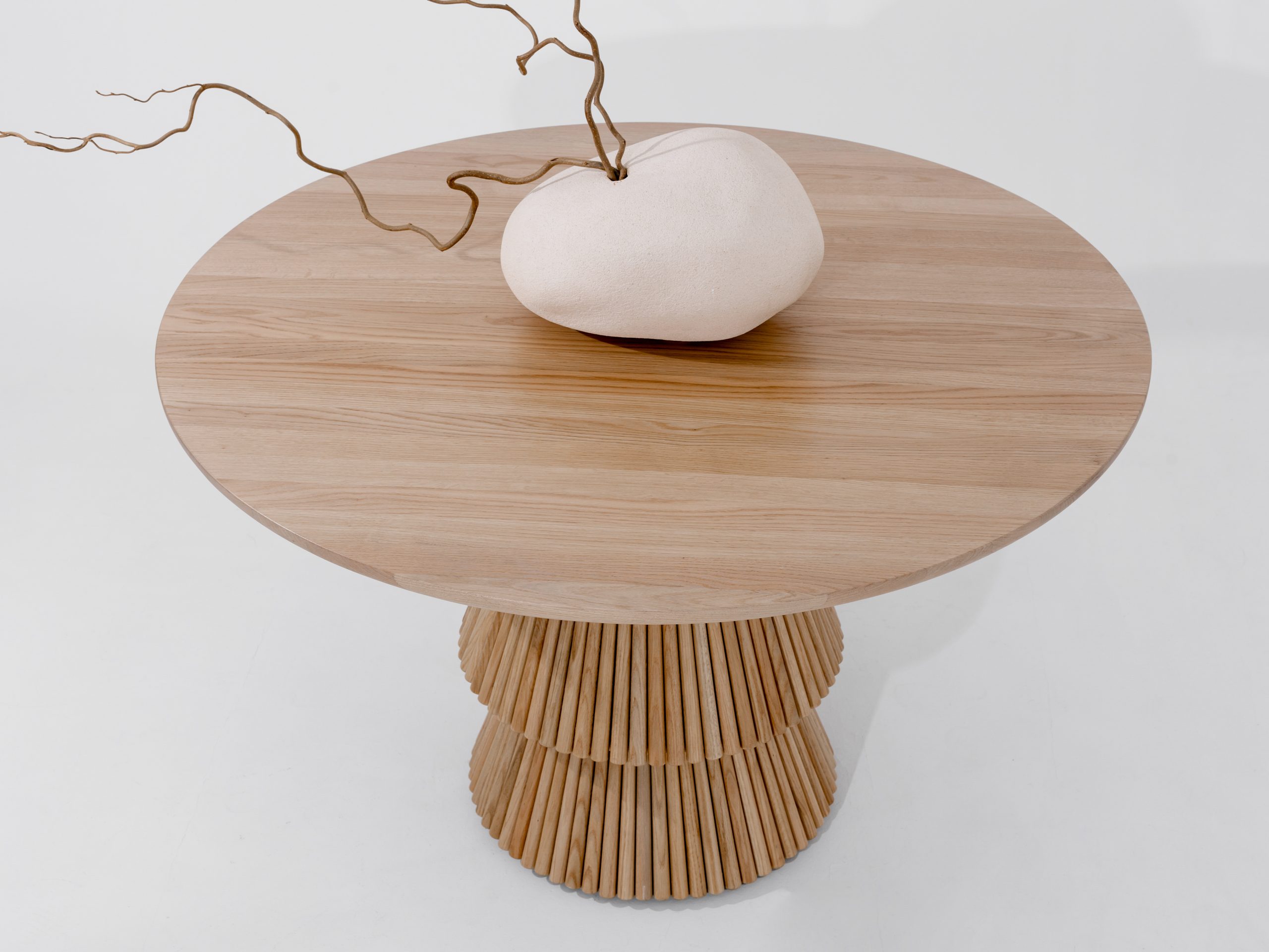Dompel jezelf onder in de perfecte balans van functionaliteit en esthetiek met onze prachtige Japandi eettafel. Handgemaakt met liefde voor detail en geïnspireerd door de rustige eenvoud van de Japanse en Scandinavische ontwerpen, brengt deze tafel een vleugje zen in jouw eetruimte.