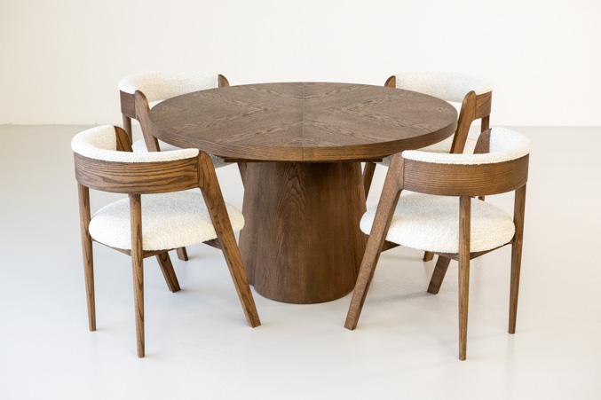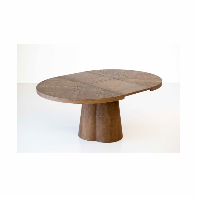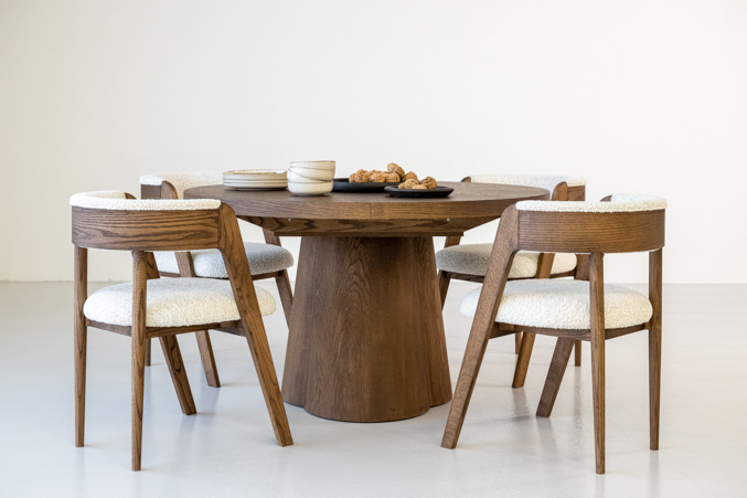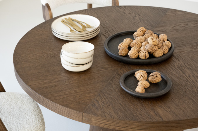 Breng warmte en minimalisme samen met een ronde eetkamertafel Moda die uitschuifbaar is. Deze tafel combineert het beste van twee werelden: het tijdloze design uit het hoge noorden en het praktische gemak van extra zitruimte wanneer je het nodig hebt. Dankzij het ronde ontwerp bevordert deze tafel de gezelligheid: iedereen ziet en spreekt elkaar gemakkelijk.