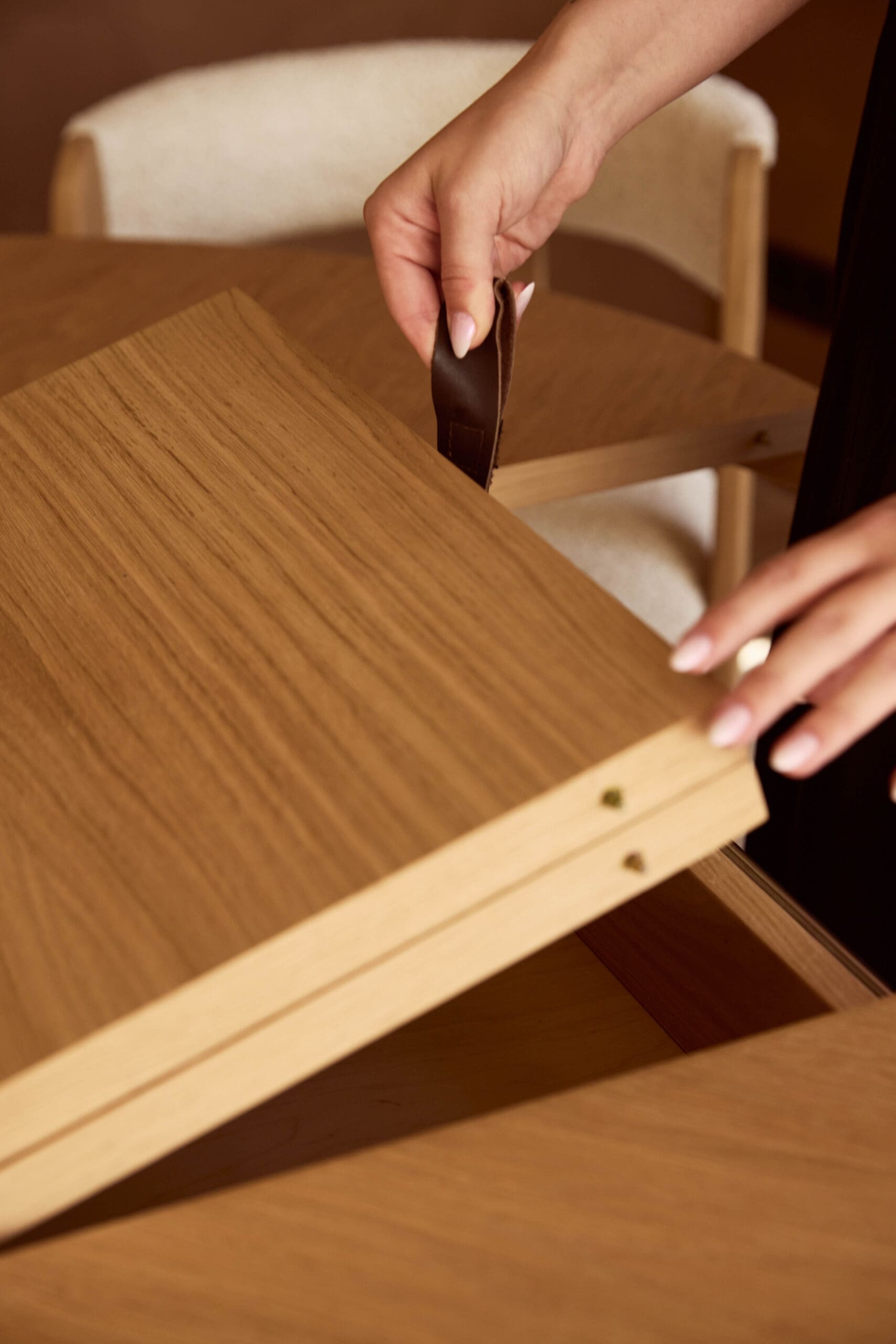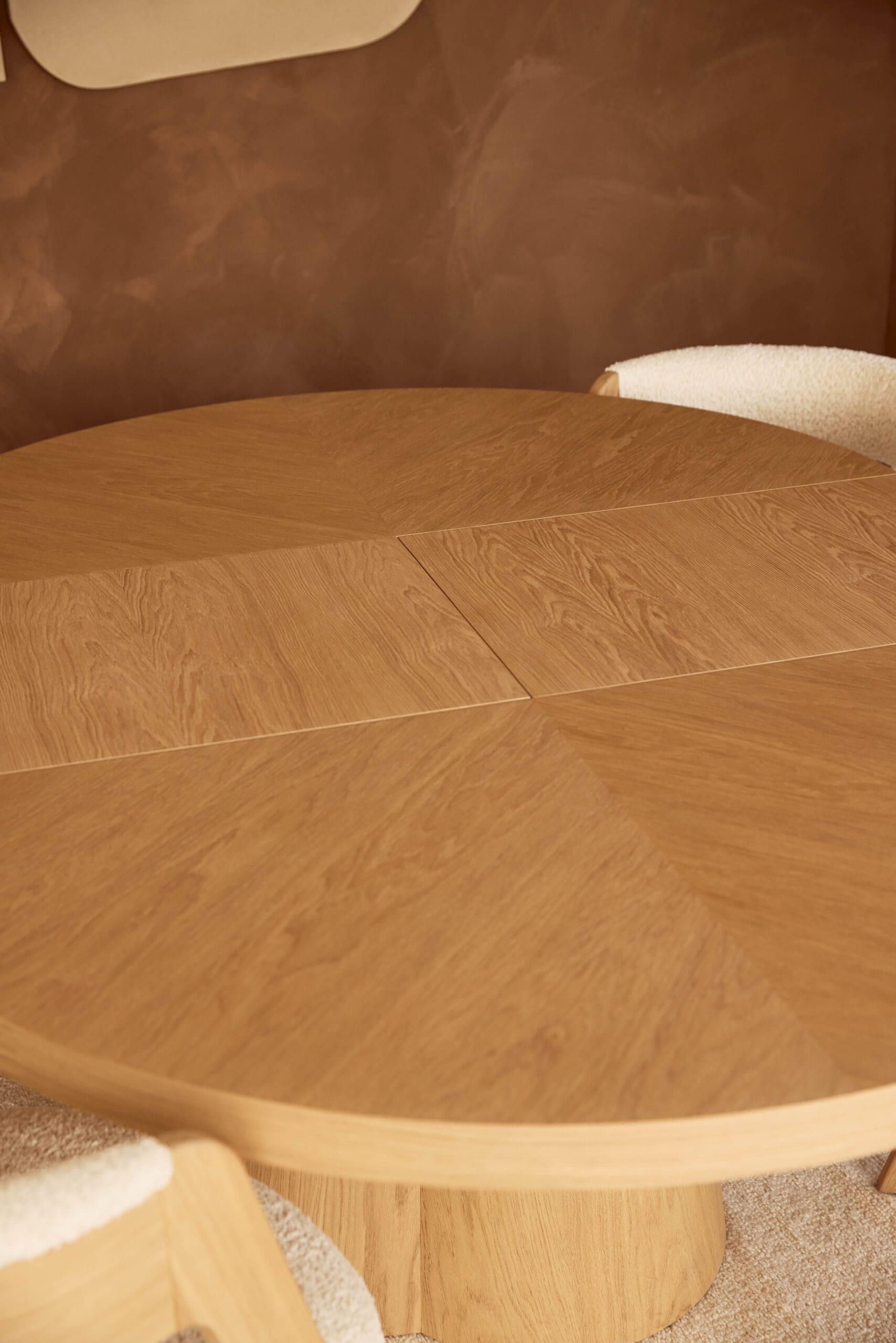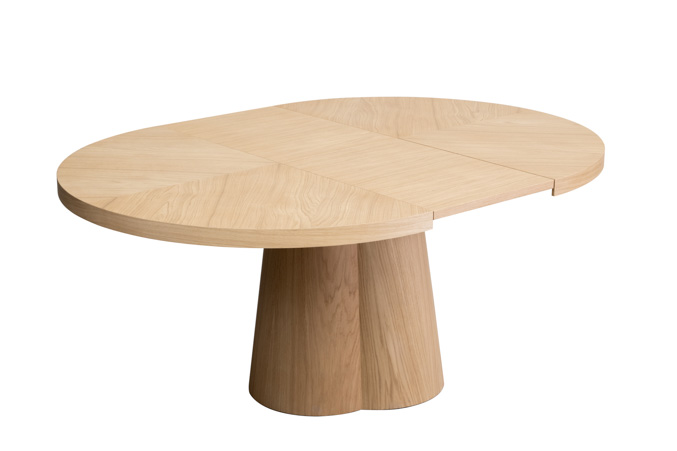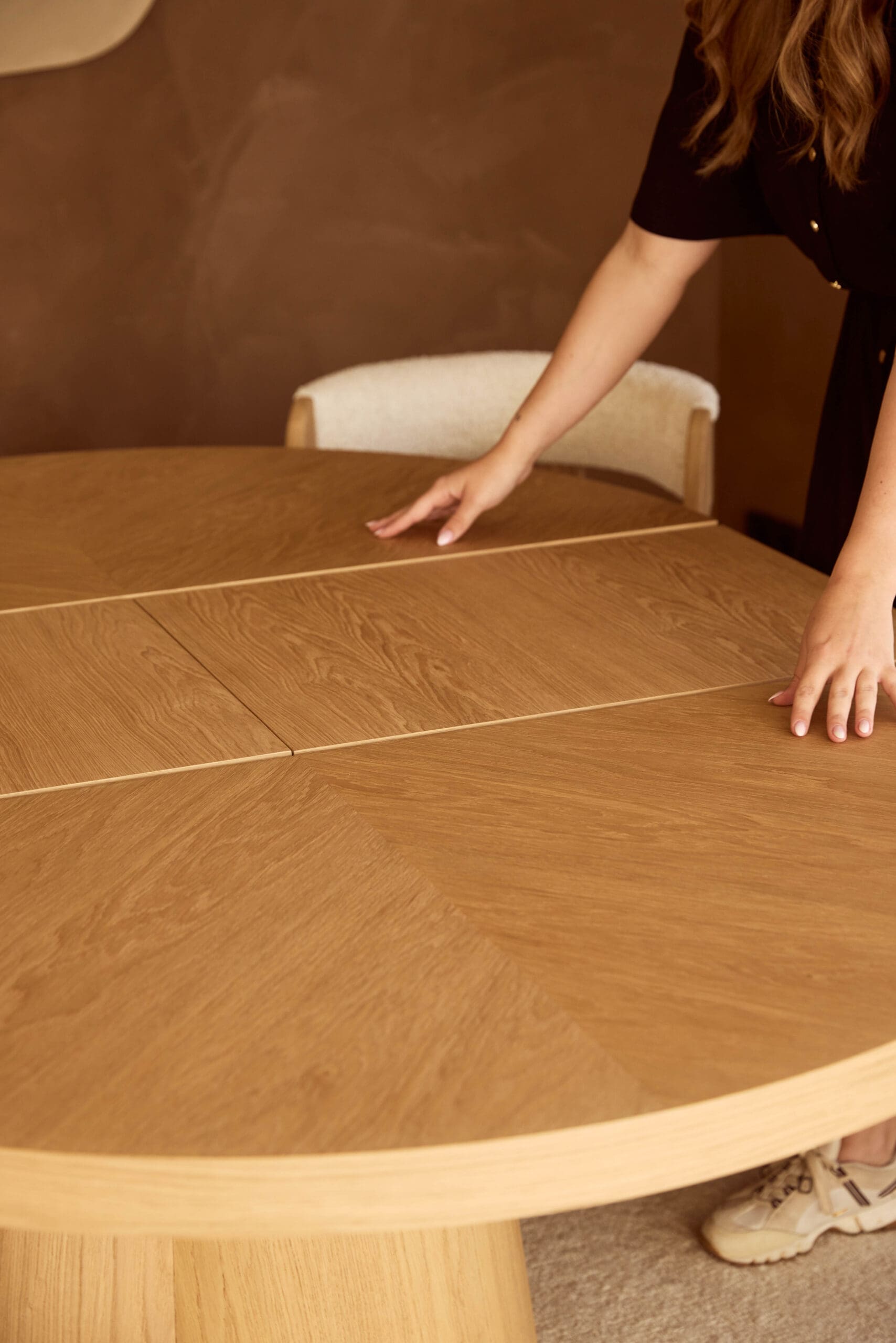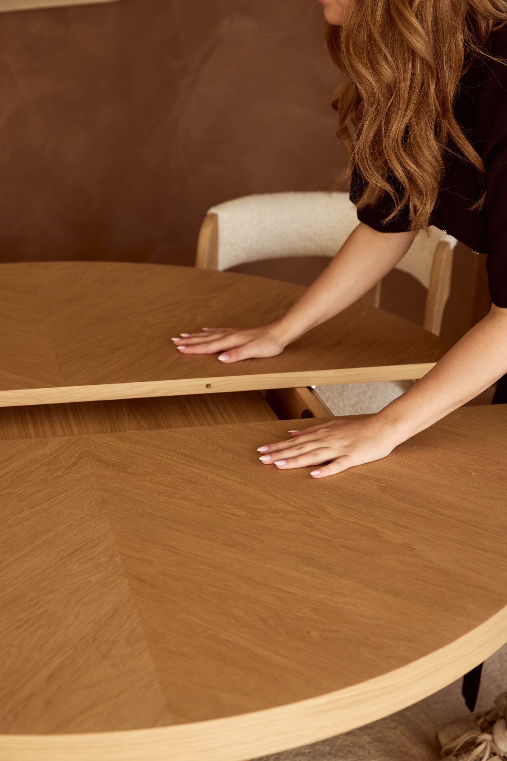 Breng warmte en minimalisme samen met een ronde eetkamertafel Moda die uitschuifbaar is. Deze tafel combineert het beste van twee werelden: het tijdloze design uit het hoge noorden en het praktische gemak van extra zitruimte wanneer je het nodig hebt. Dankzij het ronde ontwerp bevordert deze tafel de gezelligheid: iedereen ziet en spreekt elkaar gemakkelijk.