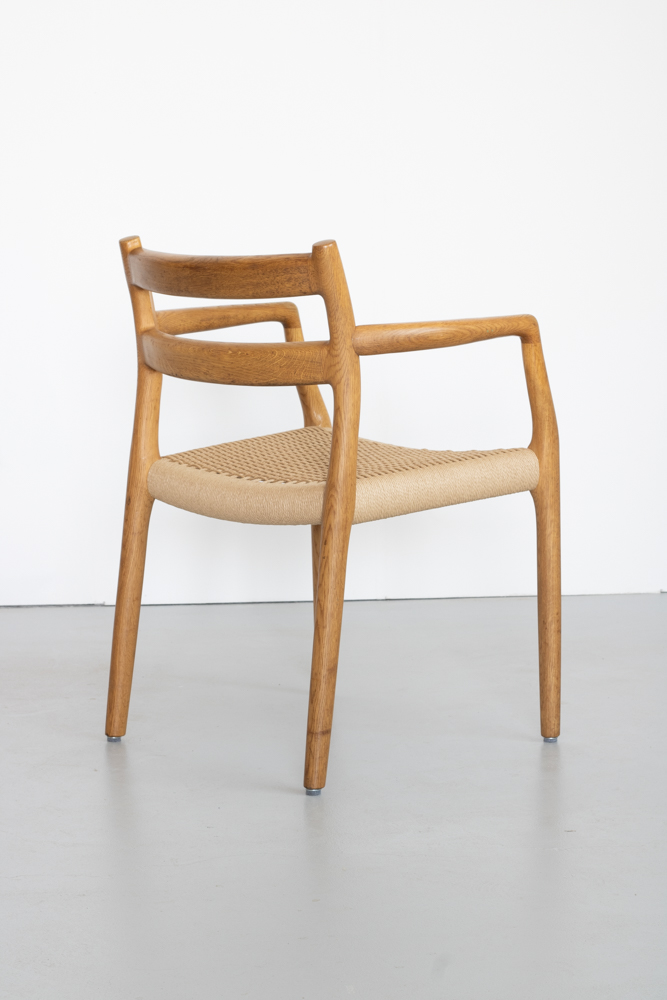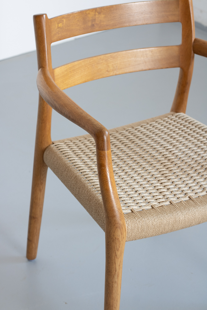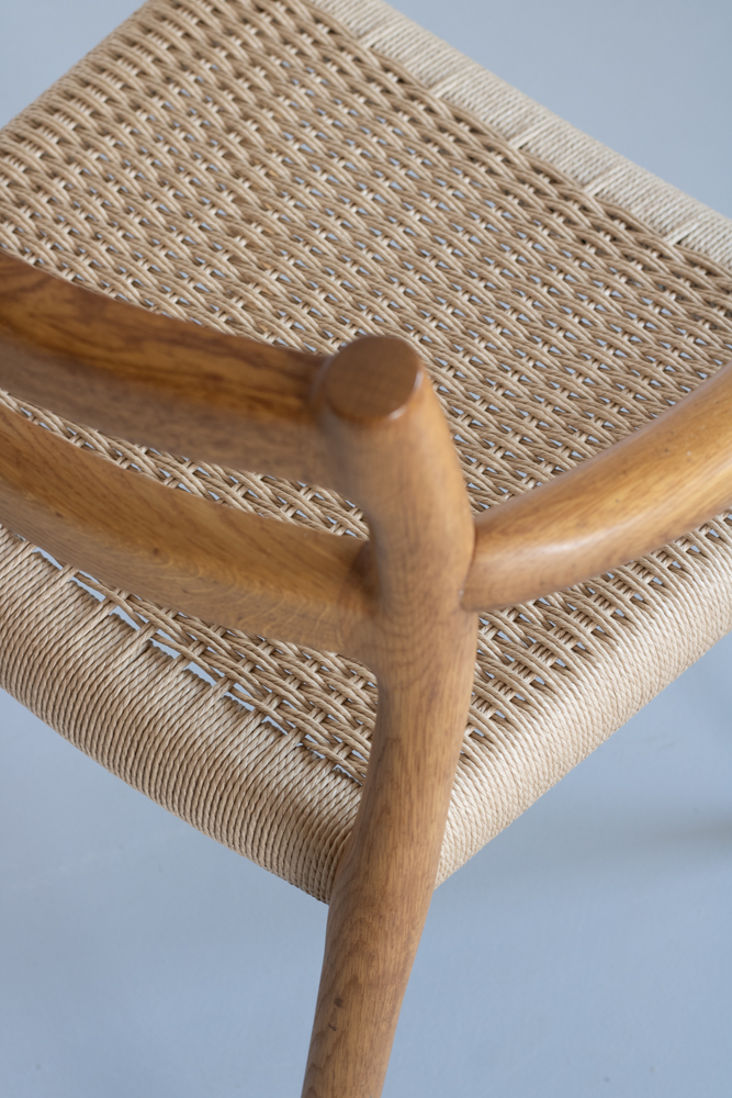 Prachtige stoelen van Niels Otto Møller. Alle stoelen zijn in top conditie, alle frames zijn opgepoetst. Prachtige gerestaureerde vintage stoelen van Niels Otto Møller. De stoelen zijn uitgevoerd in teakhout met een paper cord zitting.
