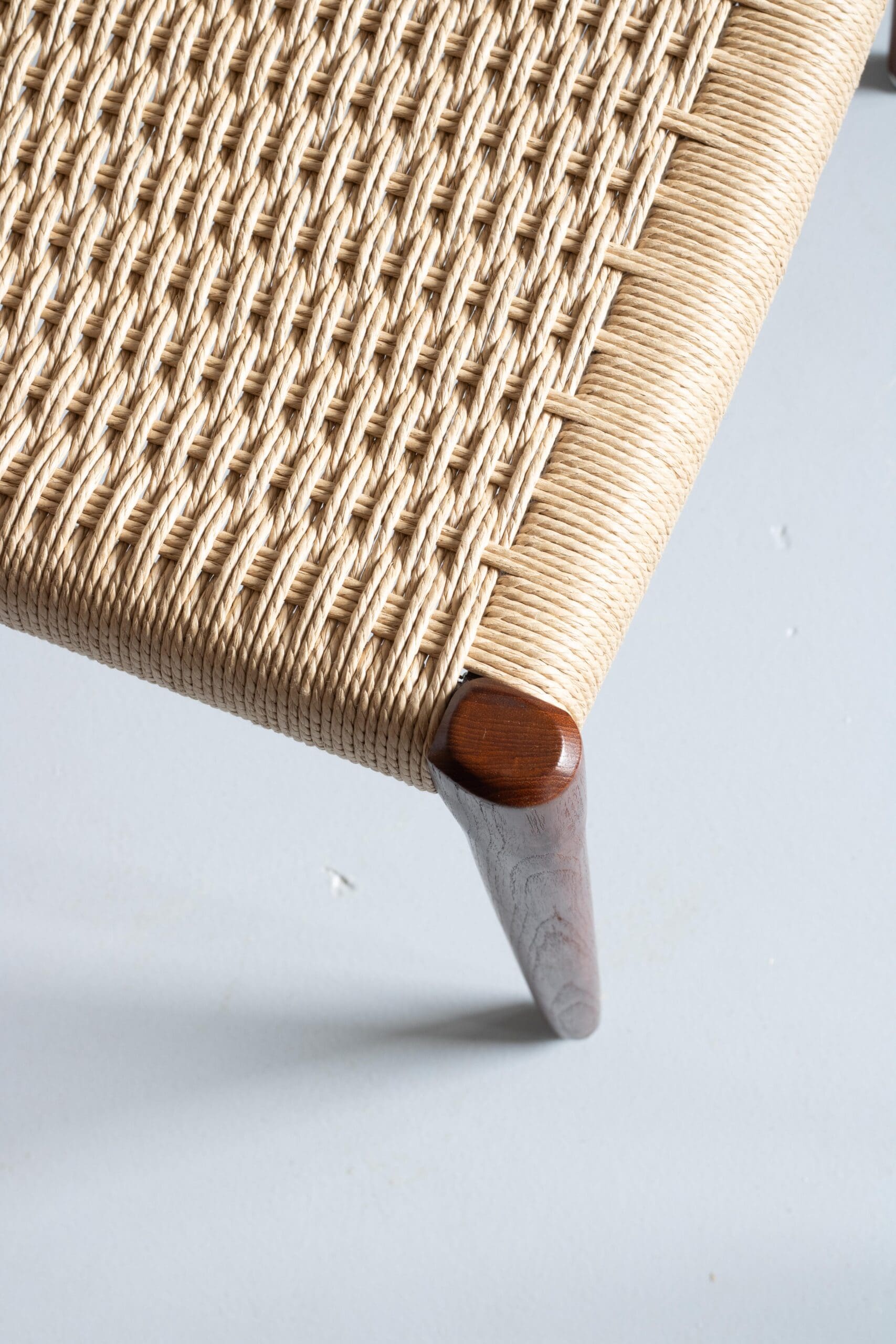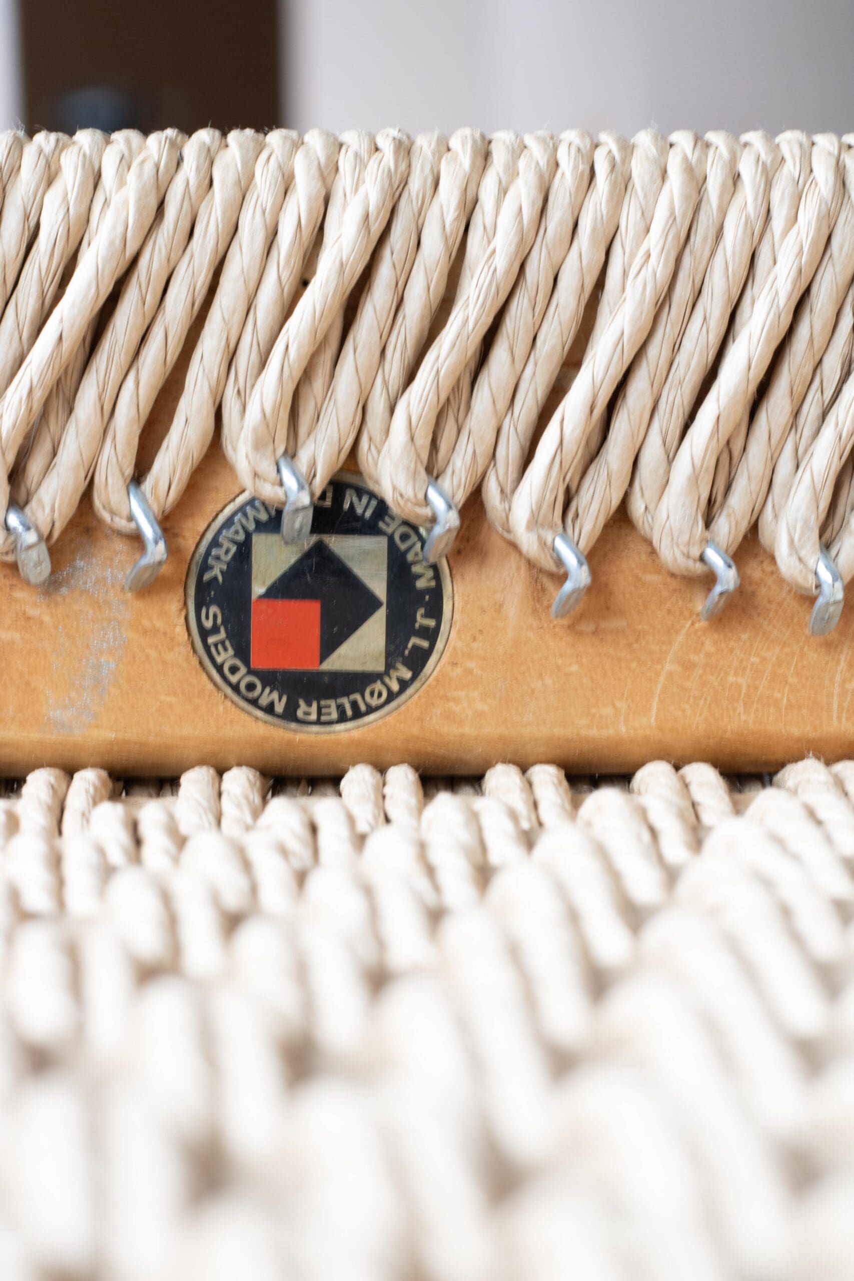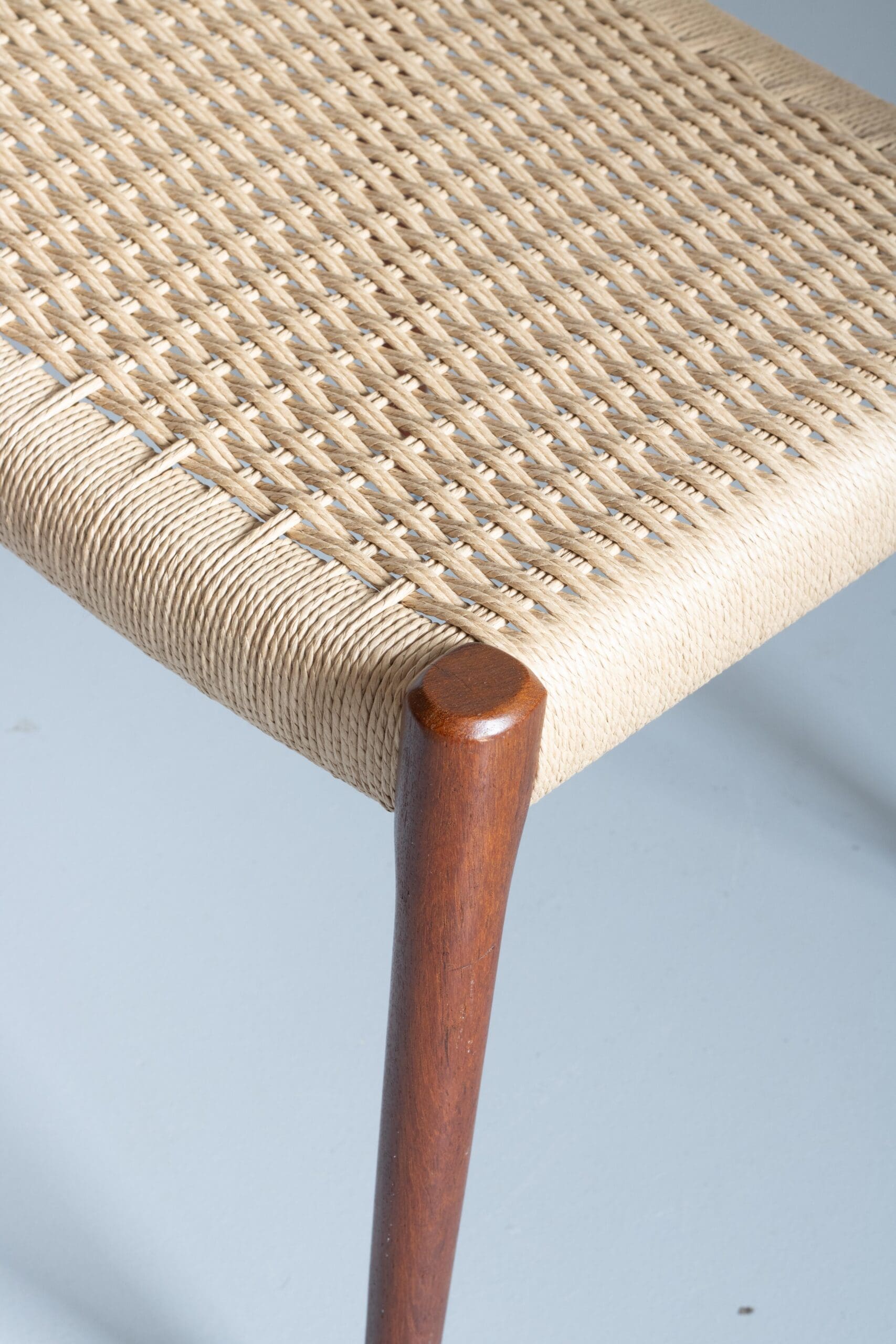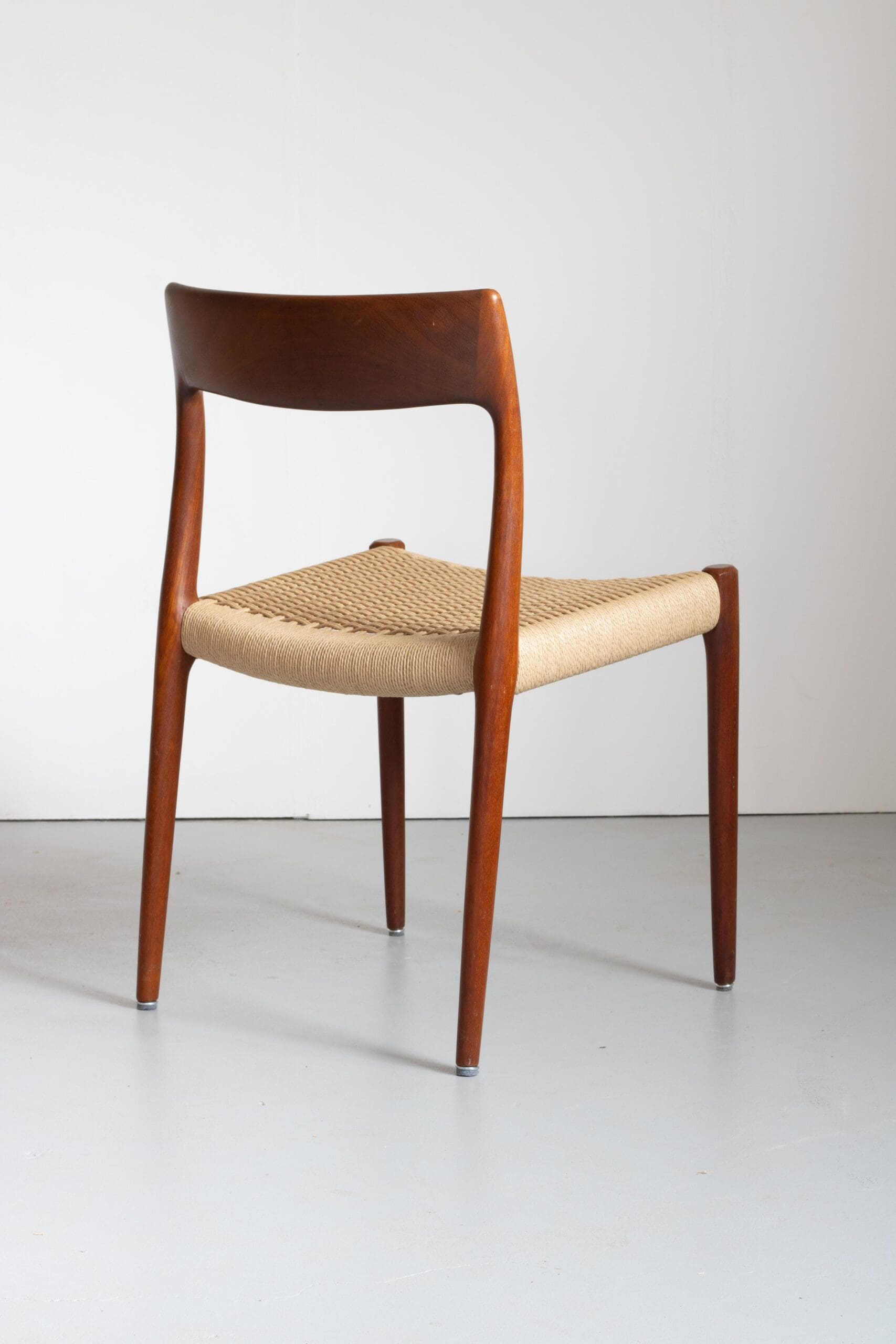 Prachtige vintage stoelen van Niels Otto Møller model 77. Alle stoelen zijn in top conditie, alle frames zijn opgepoetst. De stoelen zijn uitgevoerd in teakhout met een paper cord zitting.